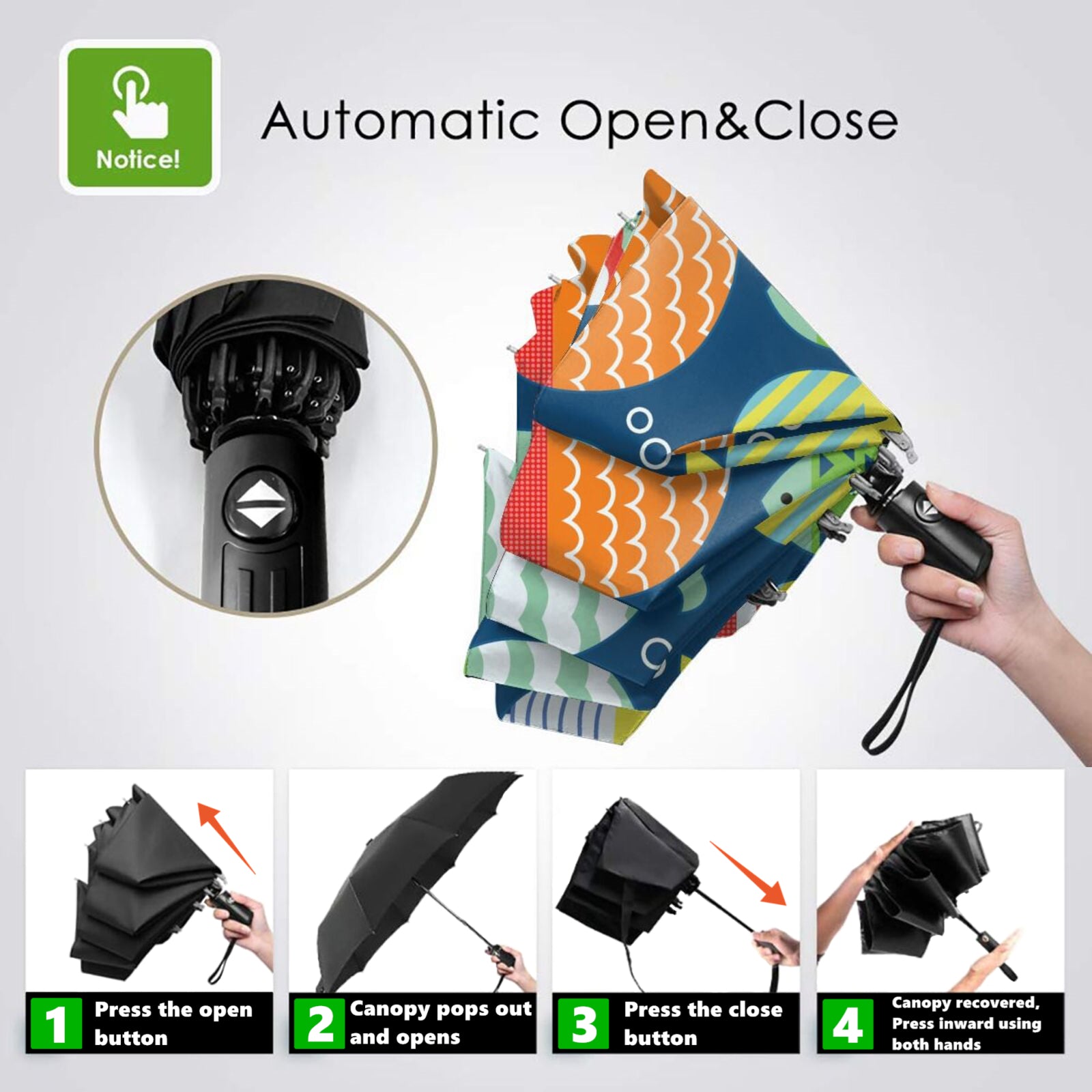 - Dies ist ein kompakter, vielseitiger Reiseschirm von höchster Qualität mit automatischem Öffnen und Schließen, der sich sowohl für den Einsatz an sonnigen als auch an regnerischen Tagen eignet.