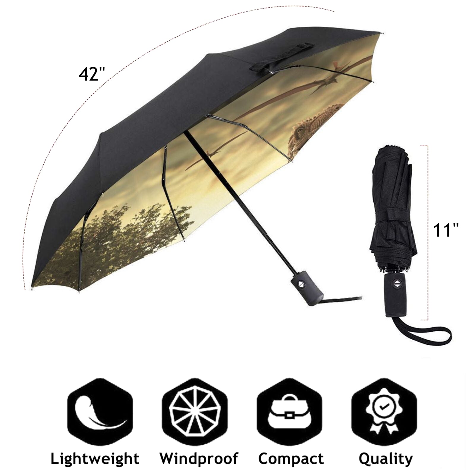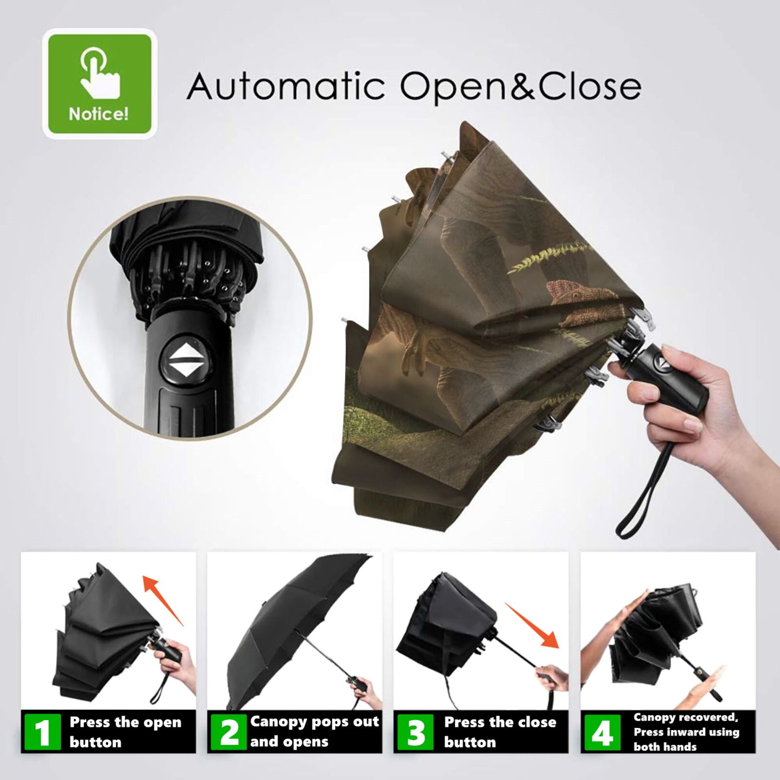 Automatischer Kompaktschirm mit Jurassic-Print auf der Innenseite
