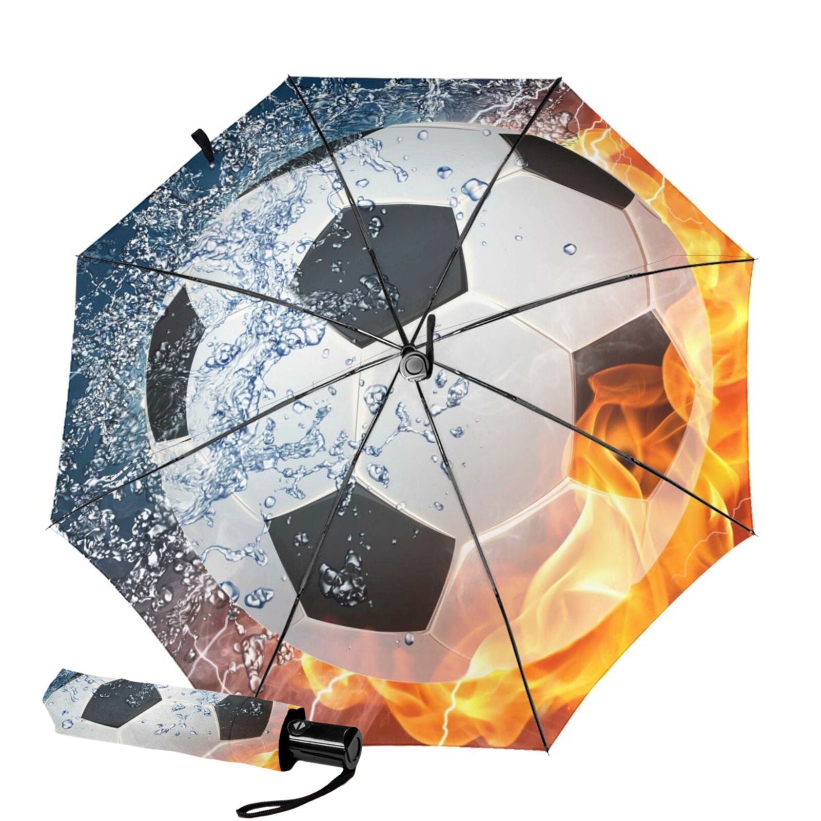 Automatischer Kompaktschirm mit Fußball-Print auf der Innenseite