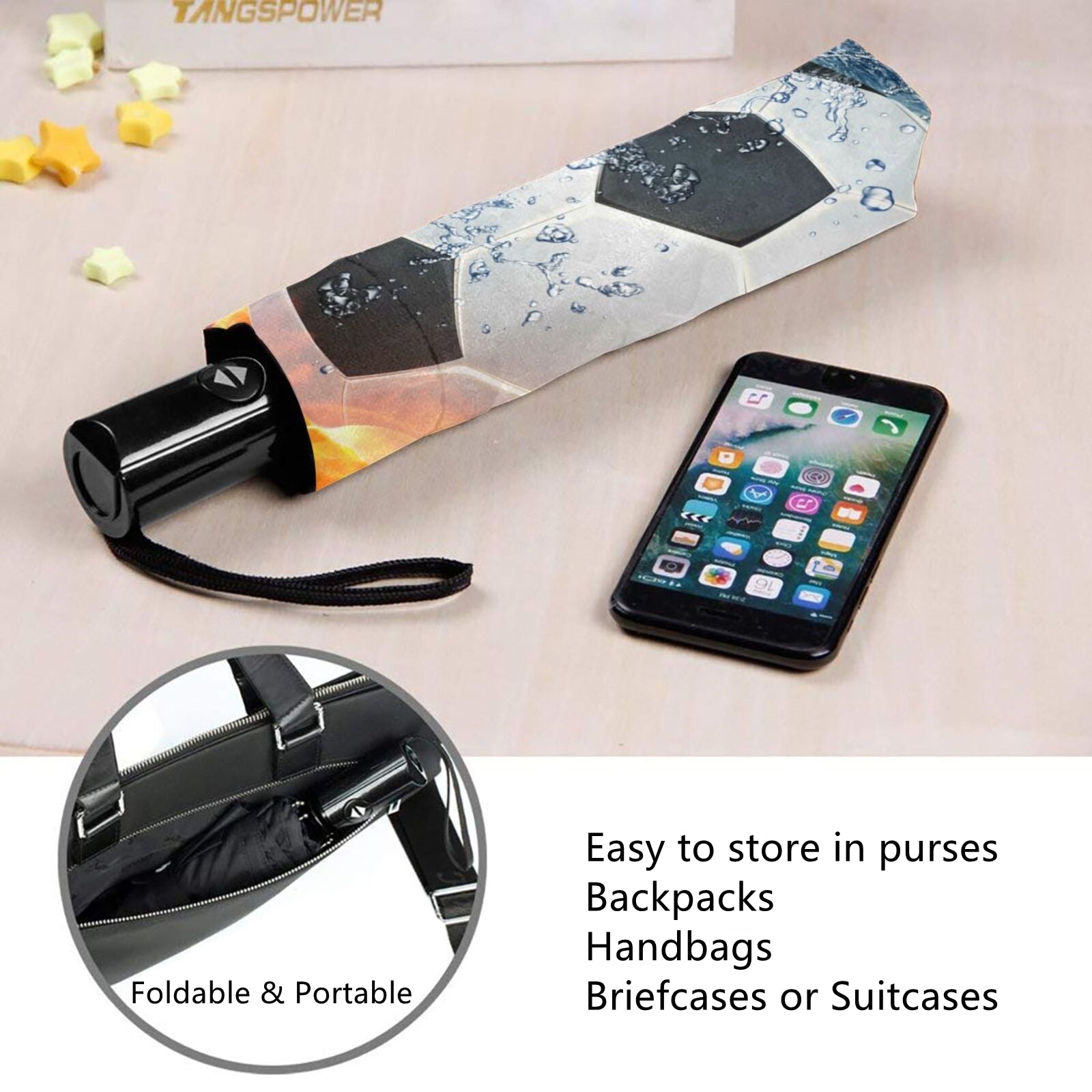 - Dieser bedruckte faltbare Regenschirm ist auf der Innenseite des Schirms mit einem klassischen Fußballmuster bedruckt.