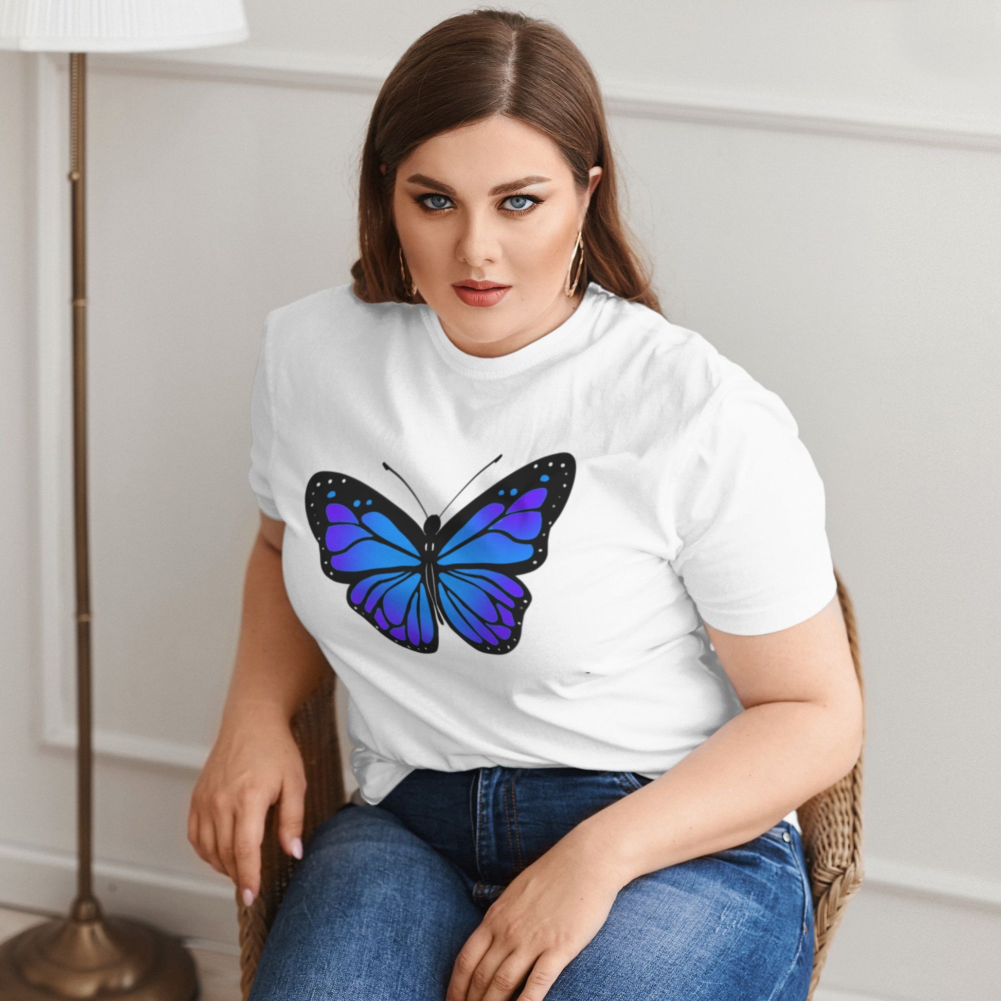 Our large-sized women's t-shirts are made of high-quality 100% cotton, with a soft and comfortable hand feel, slightly elastic, moderate length, loose fit, comfortable and fashionable, simple and practical, not easy to shrink, durable and trendy. The butterfly pattern design is printed in high-definition digital format and is not prone to fading.