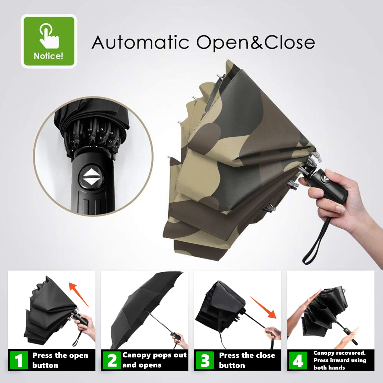 - Dies ist ein superhochwertiger und multifunktionaler Taschenschirm mit automatischem Öffnen und Schließen, der sich sowohl für den Einsatz an sonnigen als auch an regnerischen Tagen eignet.