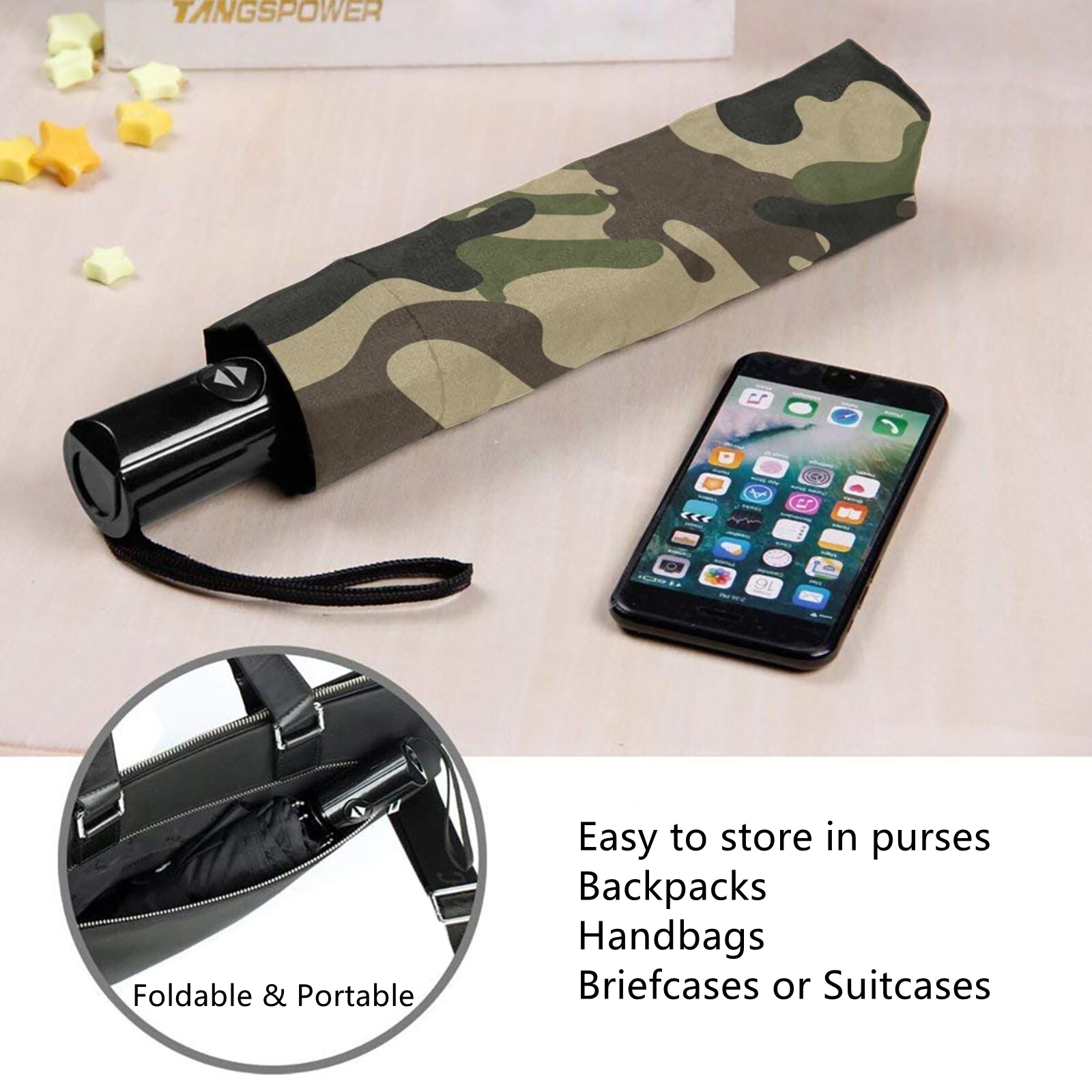 - Dieser bedruckte, faltbare Regenschirm ist auf der Innenseite des Schirmdachs mit einem klassischen Camouflage-Muster bedruckt.