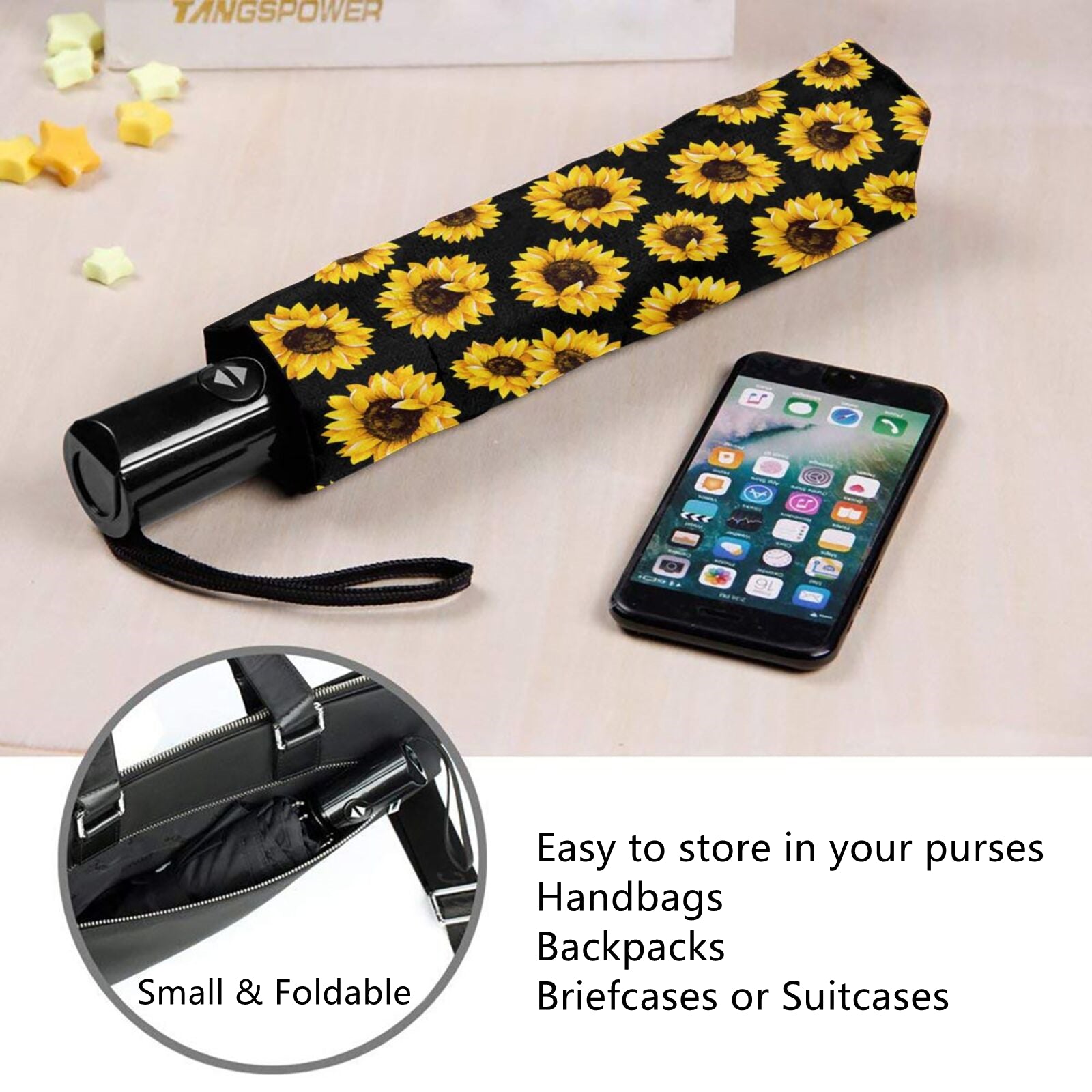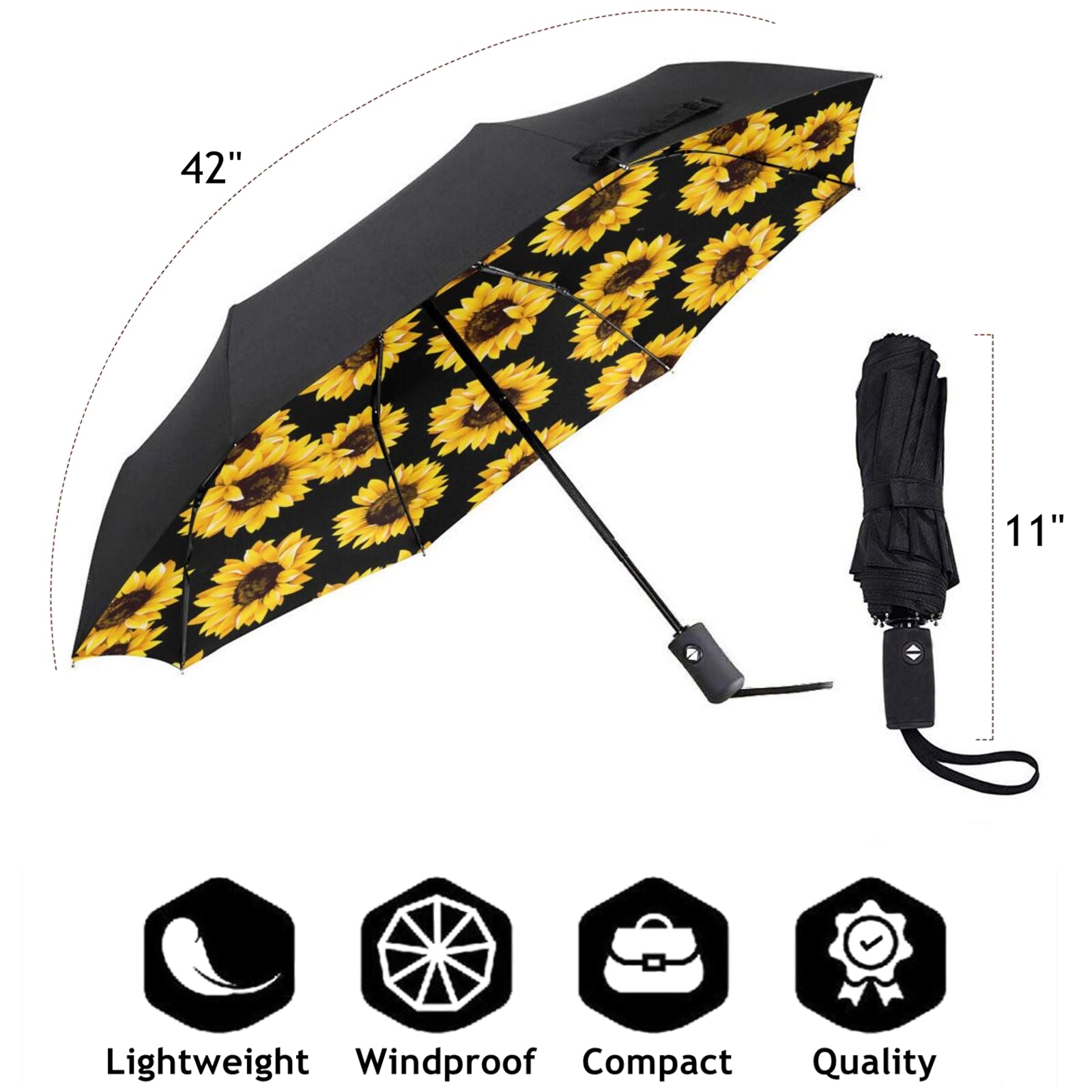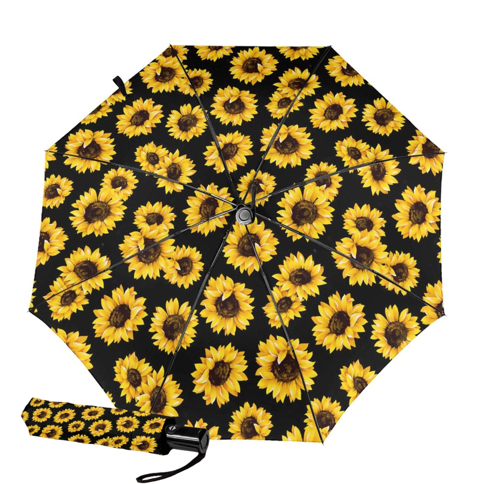 - Dieser bedruckte, faltbare Regenschirm ist auf der Innenseite des Schirmdachs mit einem klassischen Sonnenblumenmuster bedruckt.