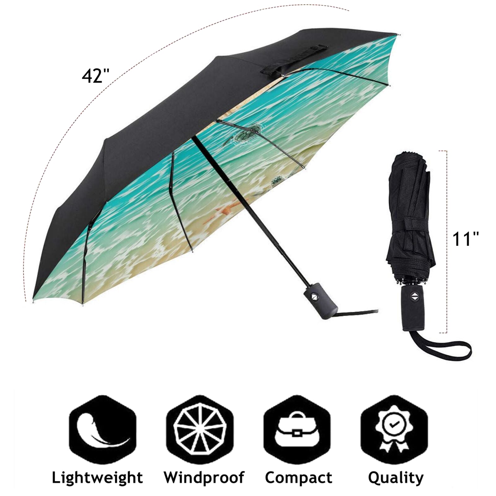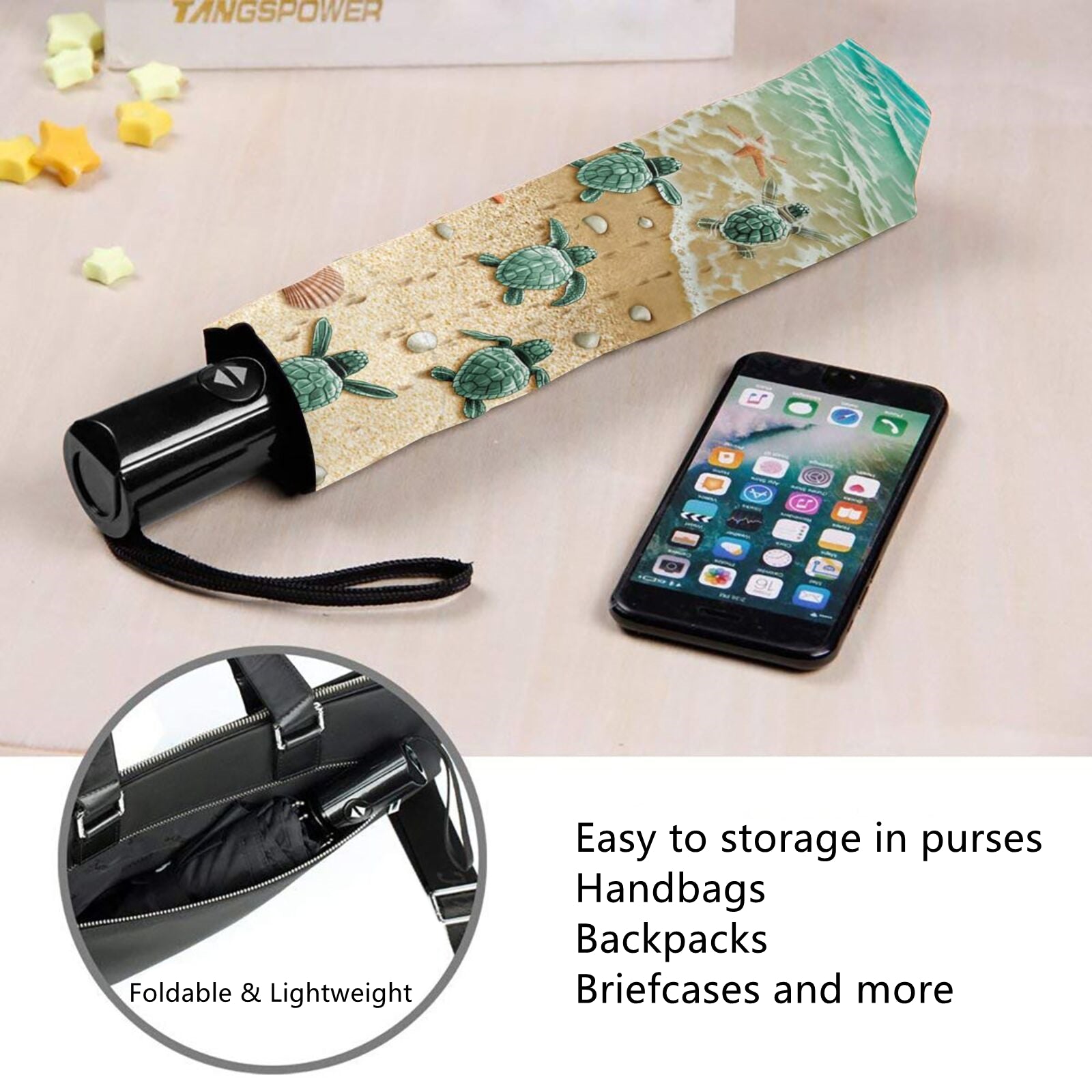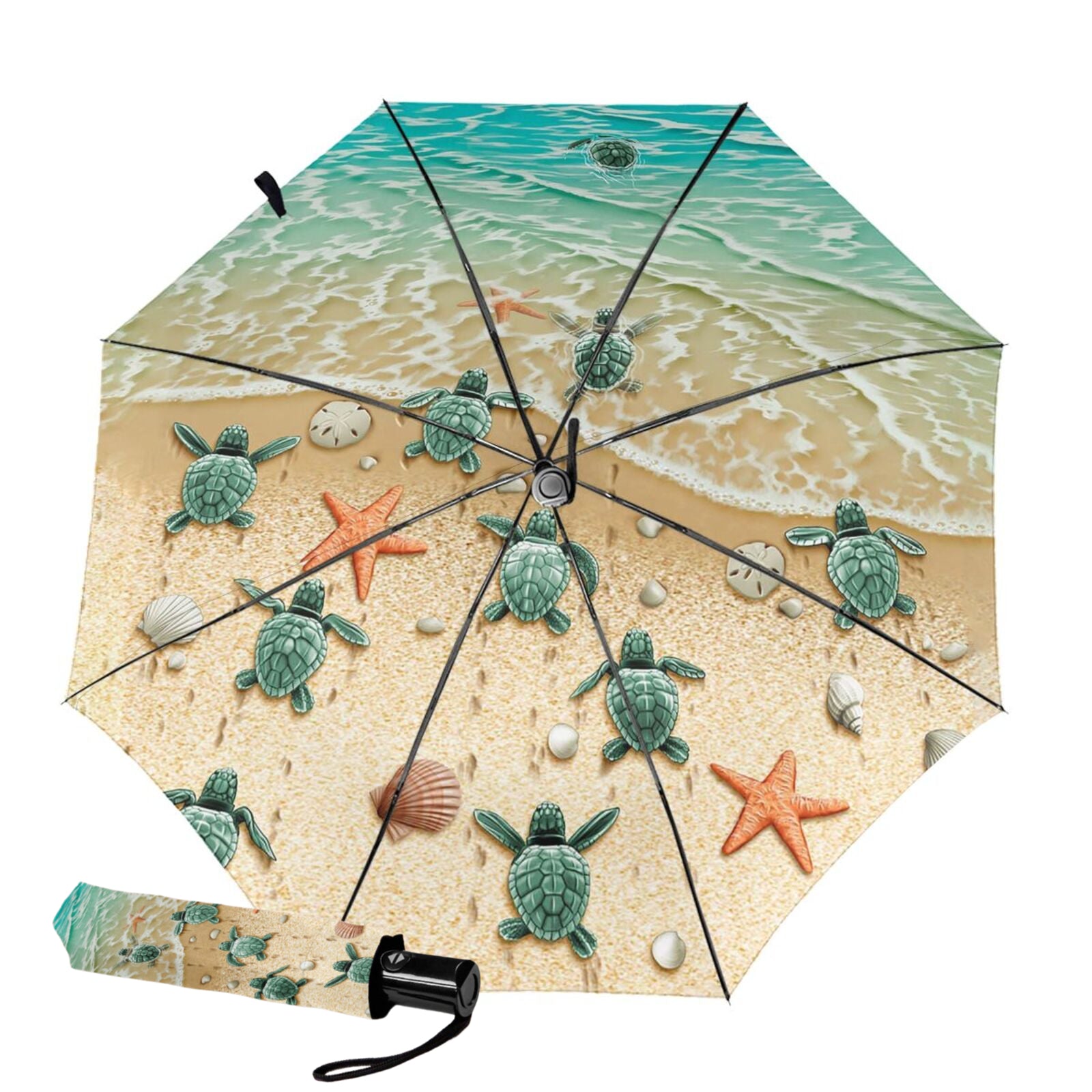 Kompakter Taschenschirm mit kleinem Schildkröten-Design im Inneren