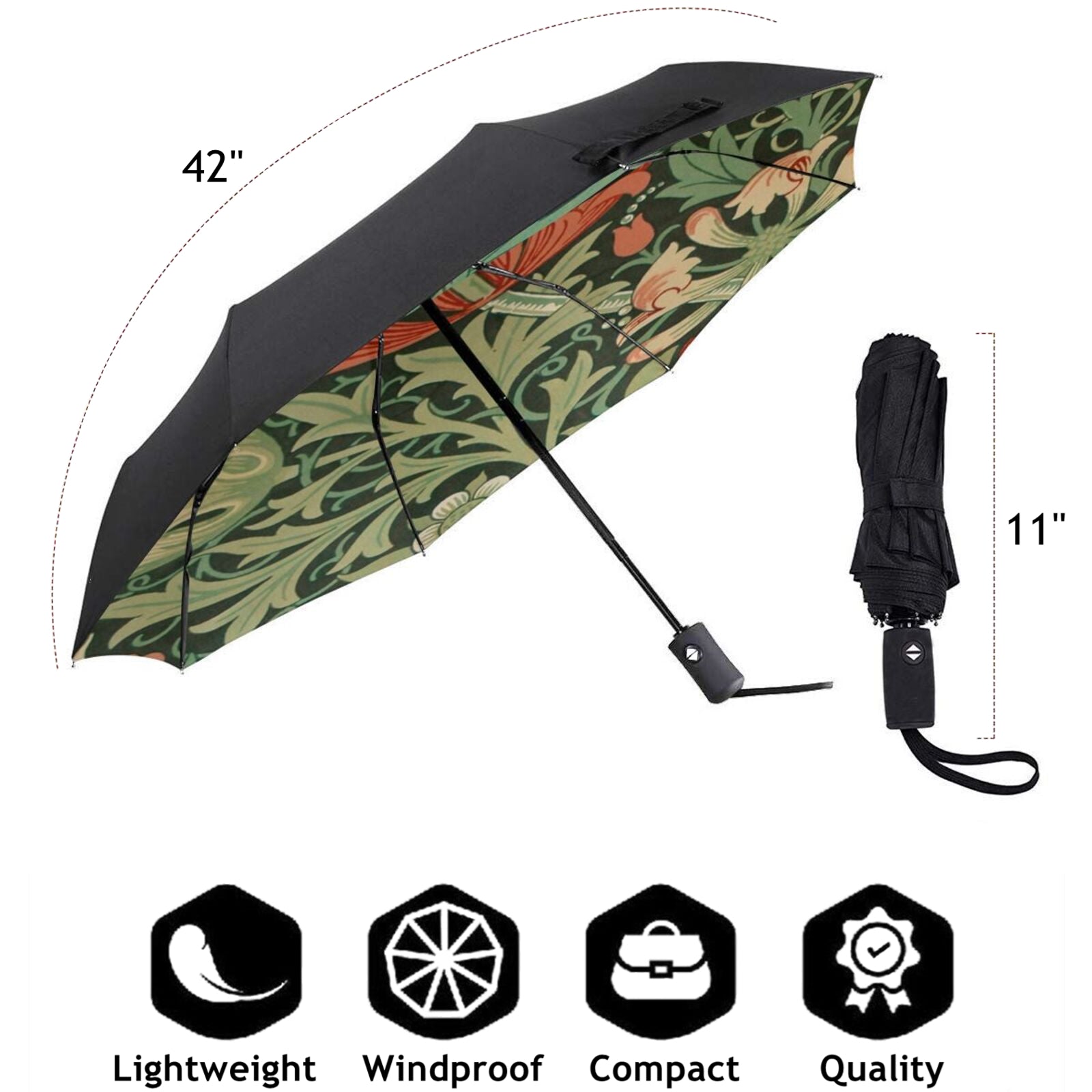 - Dieser bedruckte faltbare Regenschirm ist auf der Innenseite des Schirmdachs mit einem klassischen abstrakten Blumenmuster bedruckt.