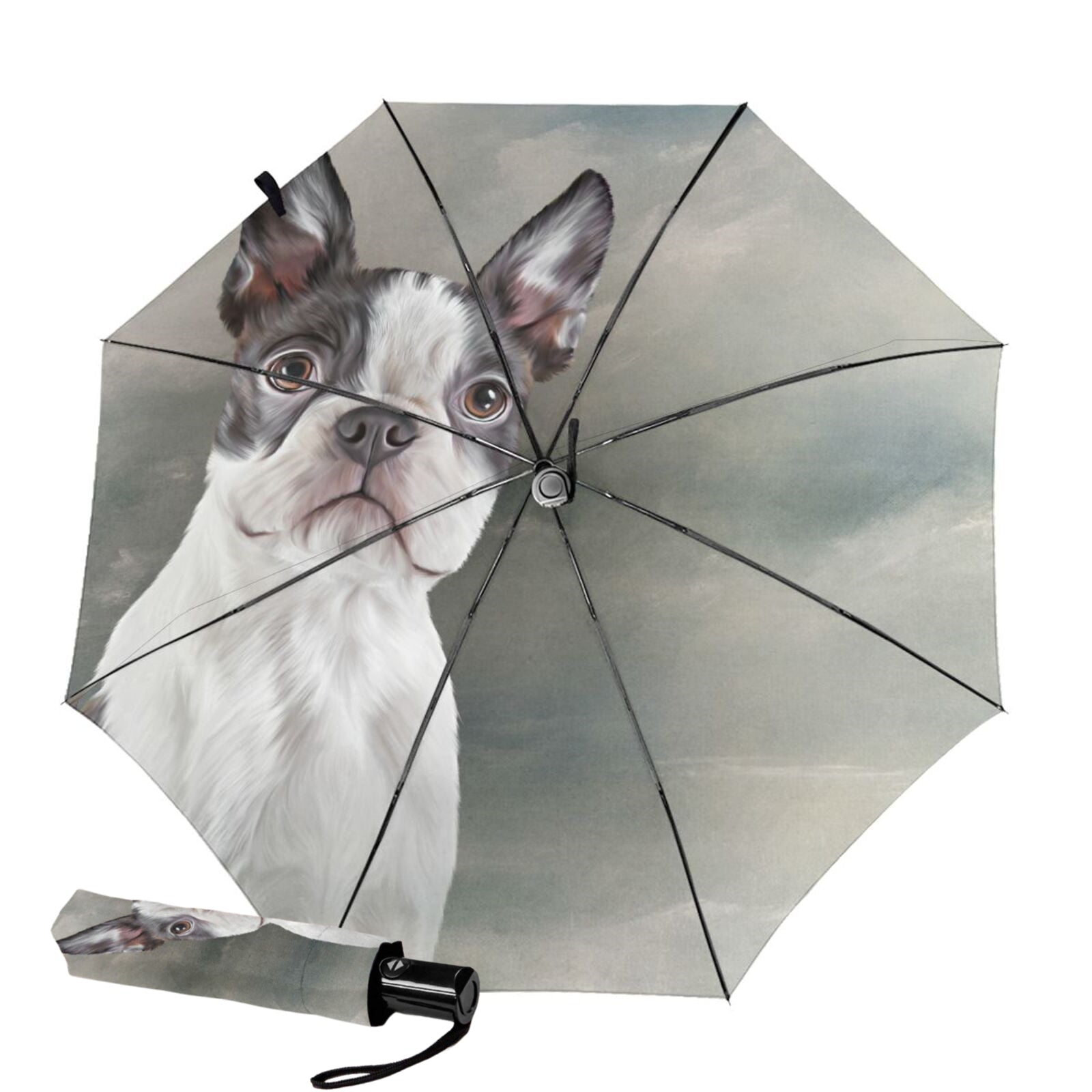 - Dieser bedruckte faltbare Regenschirm ist auf der Innenseite des Schirmdachs mit einem klassischen Hundedesignmuster bedruckt.