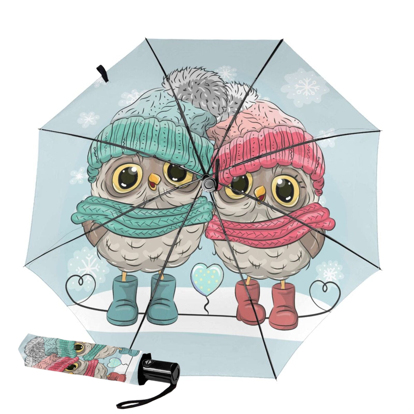 Kompakter Regenschirm mit Vogelpaar-Design im Inneren