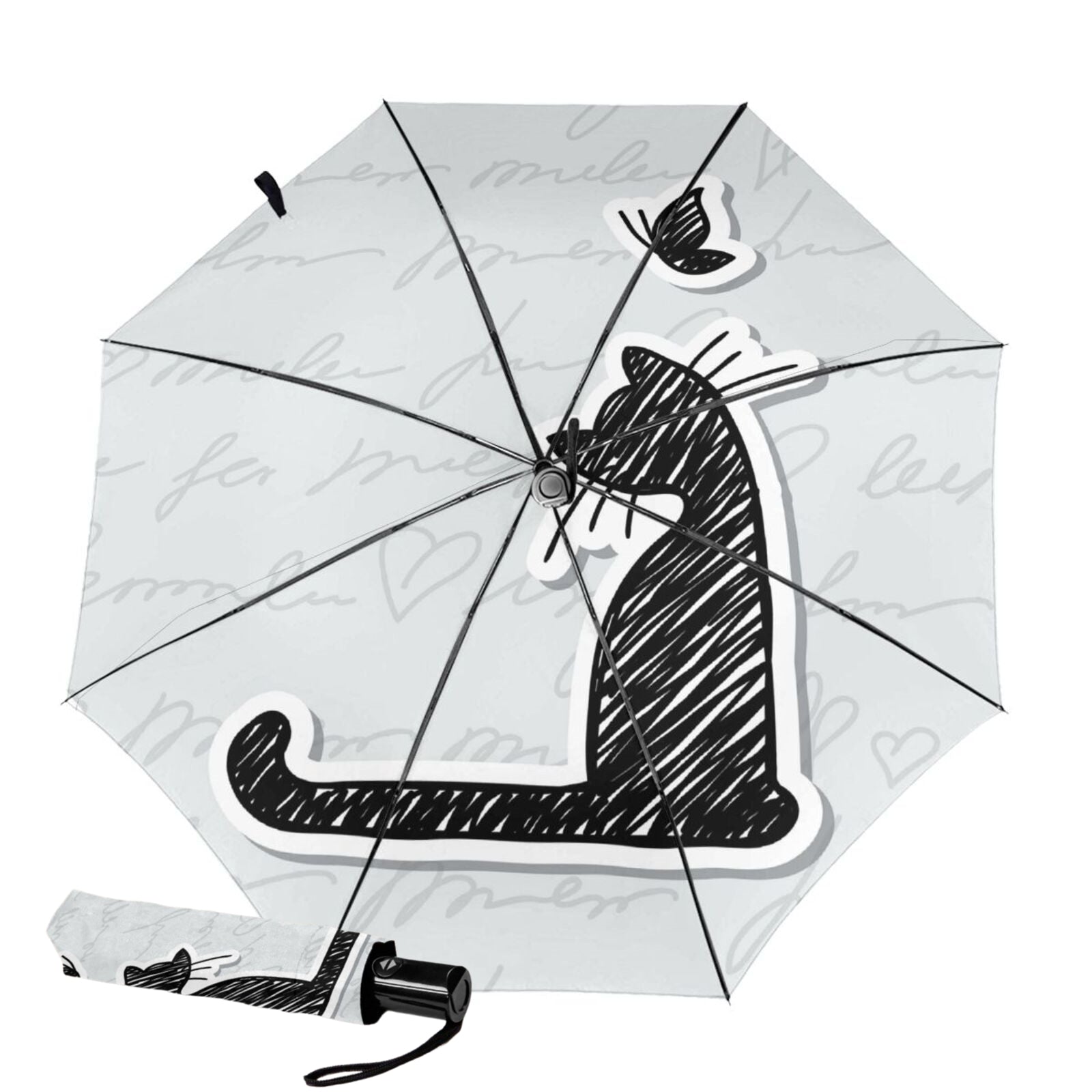 Kompakter Regenschirm mit Katzendesign im Inneren