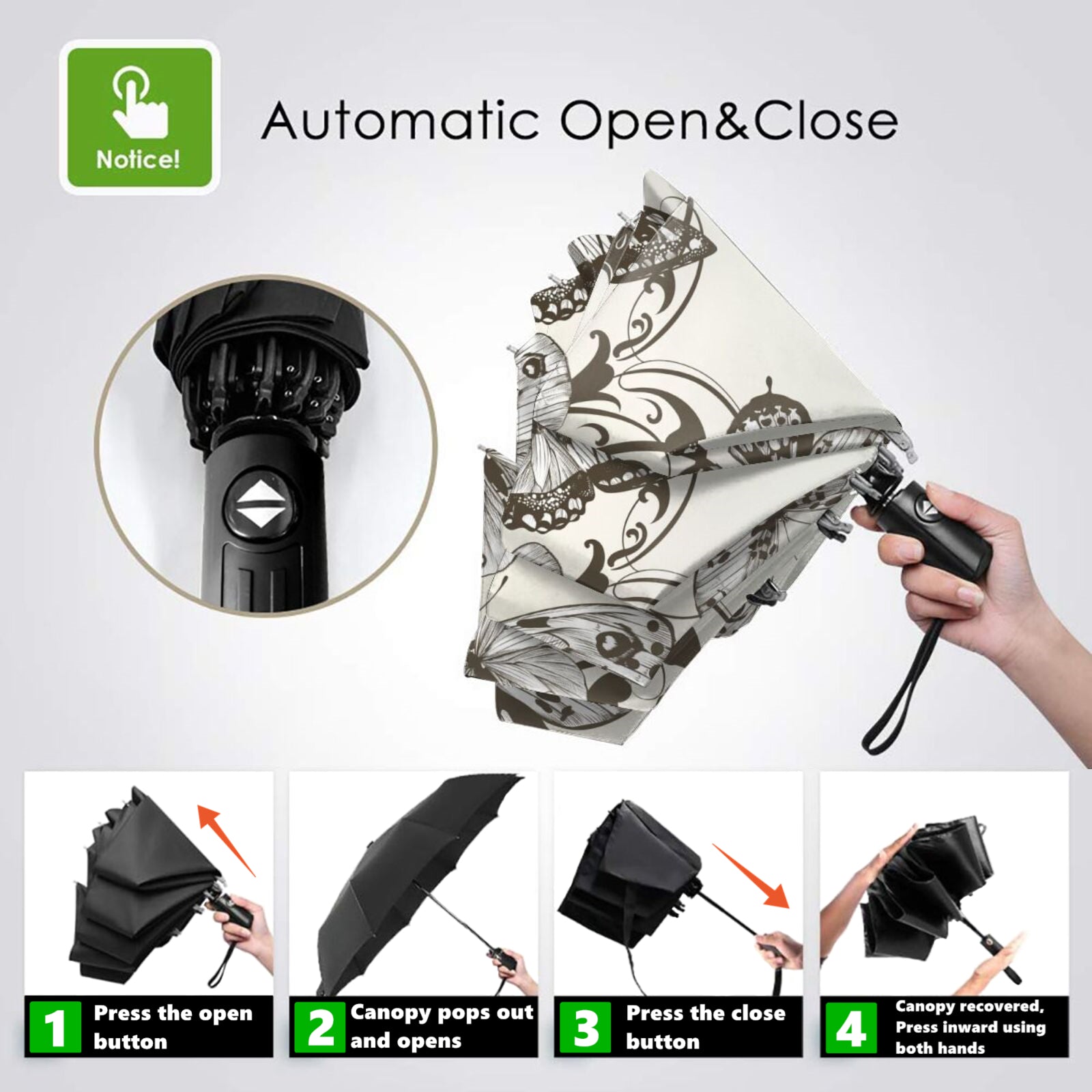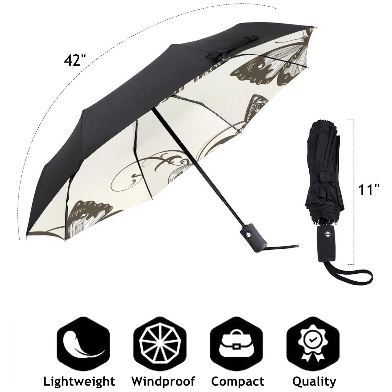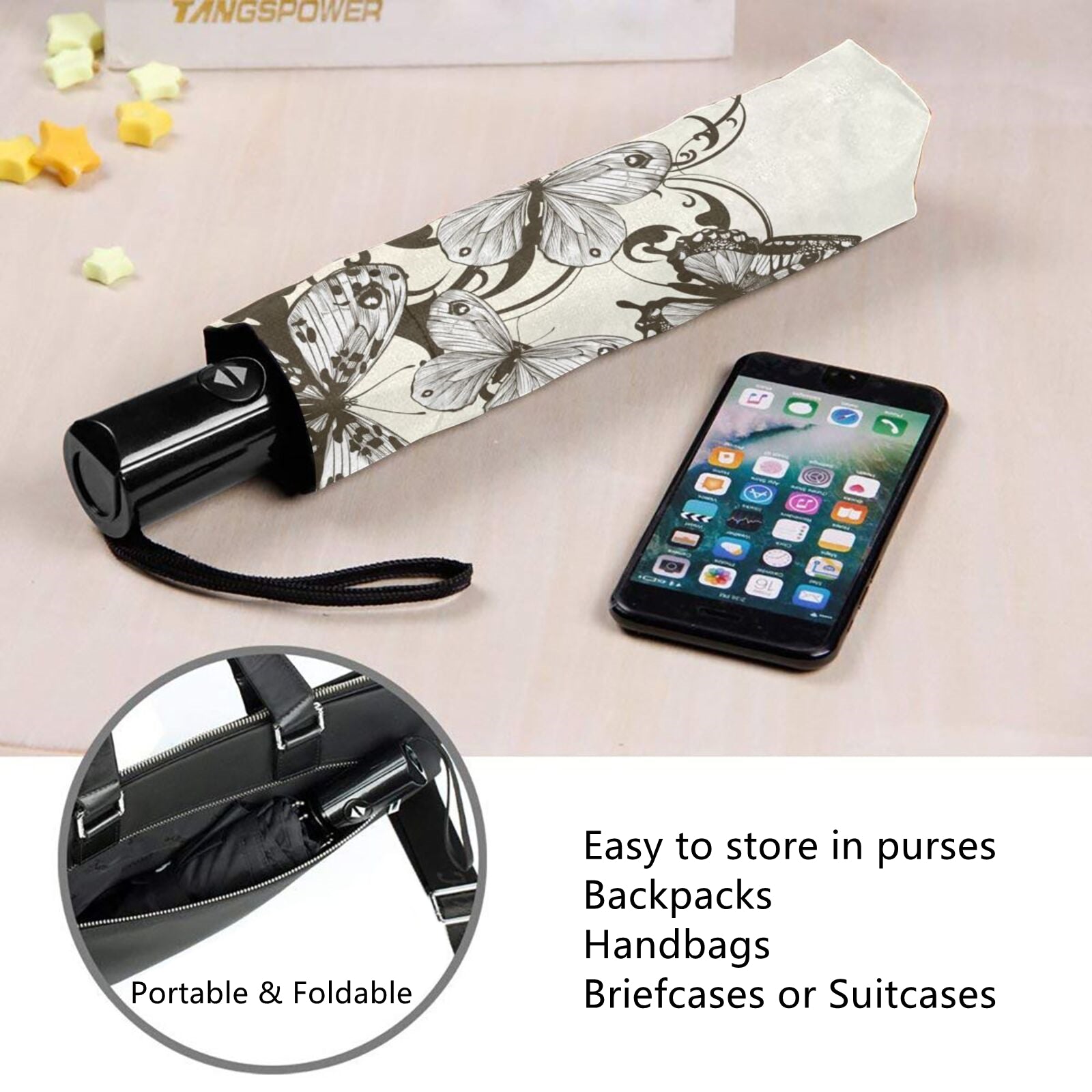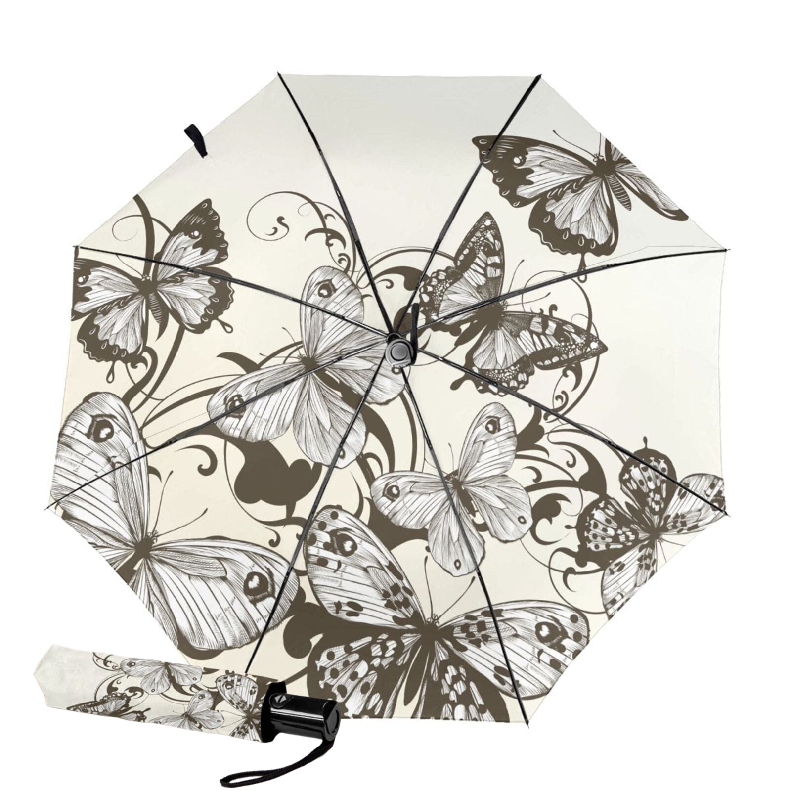 - Dieser bedruckte faltbare Regenschirm ist auf der Innenseite des Schirmdachs mit einem wunderschönen klassischen Schmetterlingsmuster bedruckt.