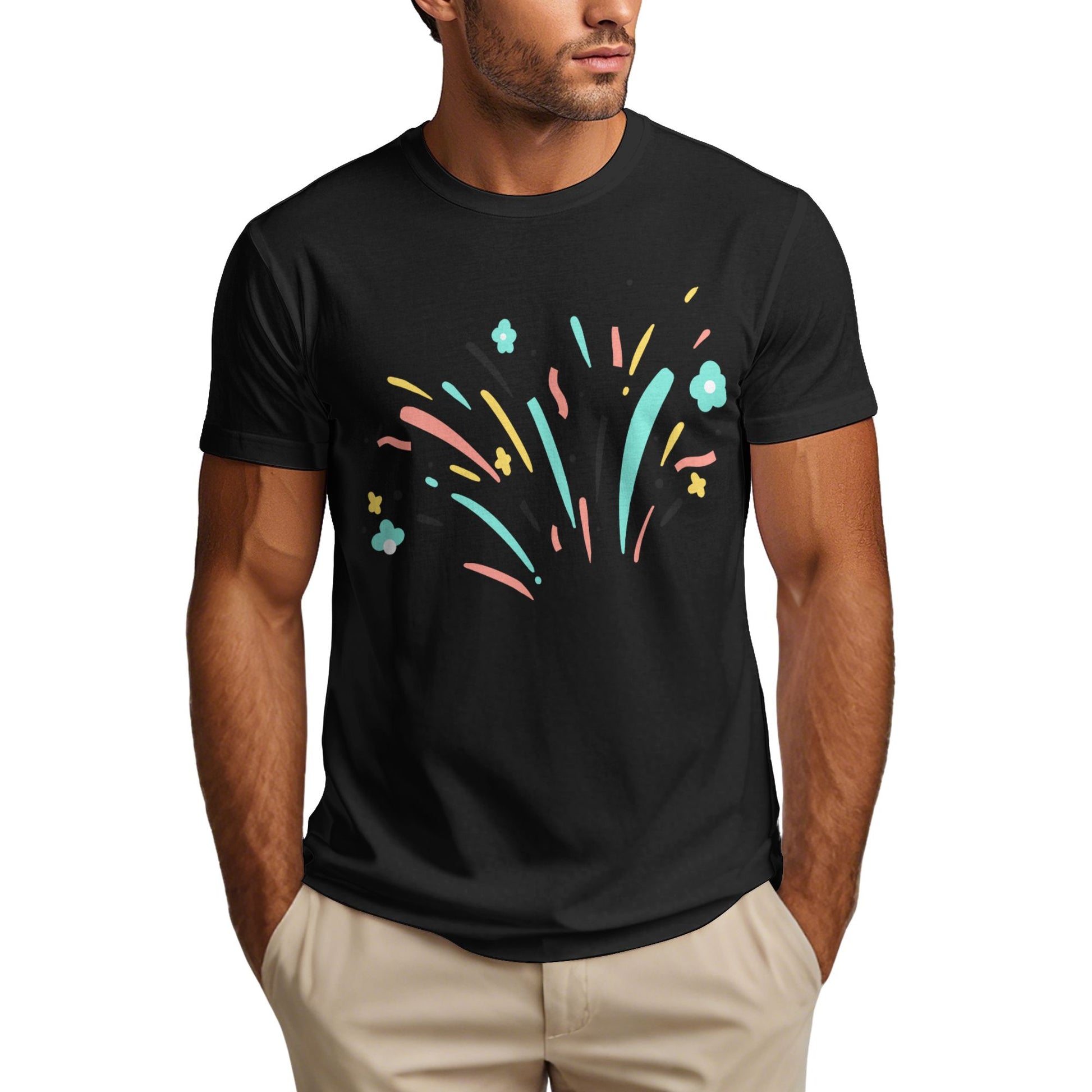 Fireworks Design Men's Short Sleeve Cotton T-Shirt