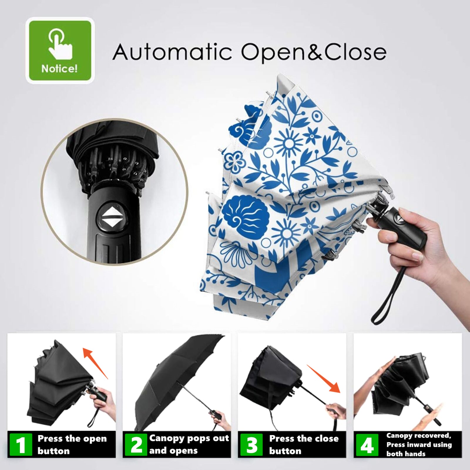 - Dies ist ein superhochwertiger und multifunktionaler Taschenschirm mit automatischem Öffnen und Schließen, der sich sowohl für den Einsatz an sonnigen als auch an regnerischen Tagen eignet.