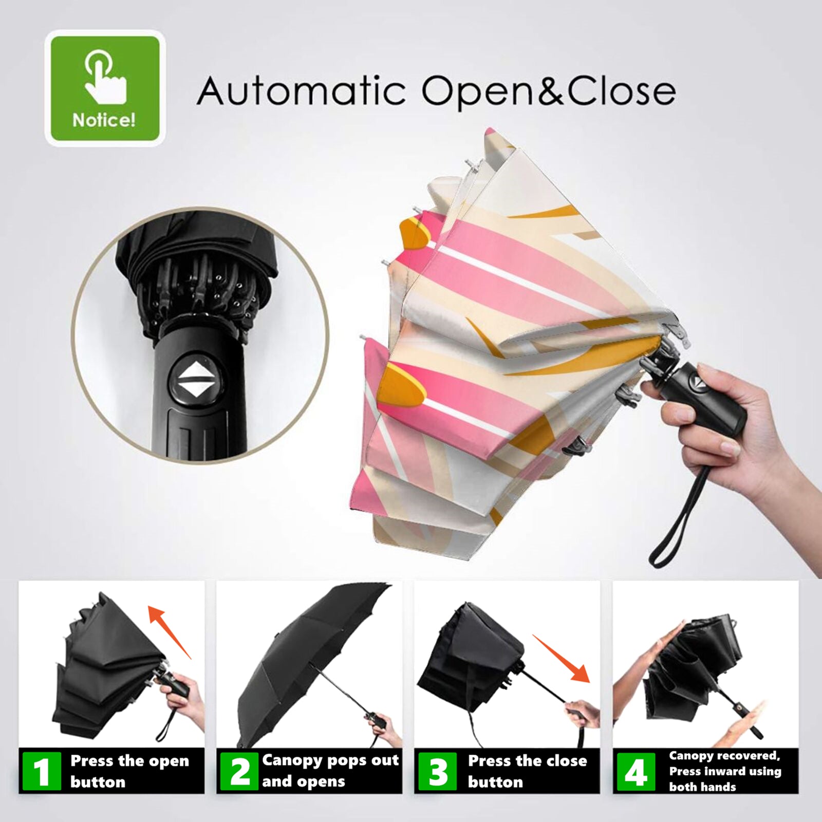 - Dies ist ein superhochwertiger und multifunktionaler Taschenschirm mit automatischem Öffnen und Schließen, der sich sowohl für den Einsatz an sonnigen als auch an regnerischen Tagen eignet.