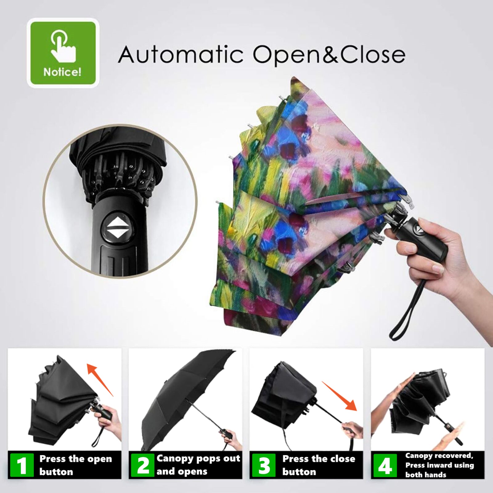 - Dies ist ein superhochwertiger und multifunktionaler Taschenschirm mit automatischem Öffnen und Schließen, der sich sowohl für den Einsatz an sonnigen als auch an regnerischen Tagen eignet.
