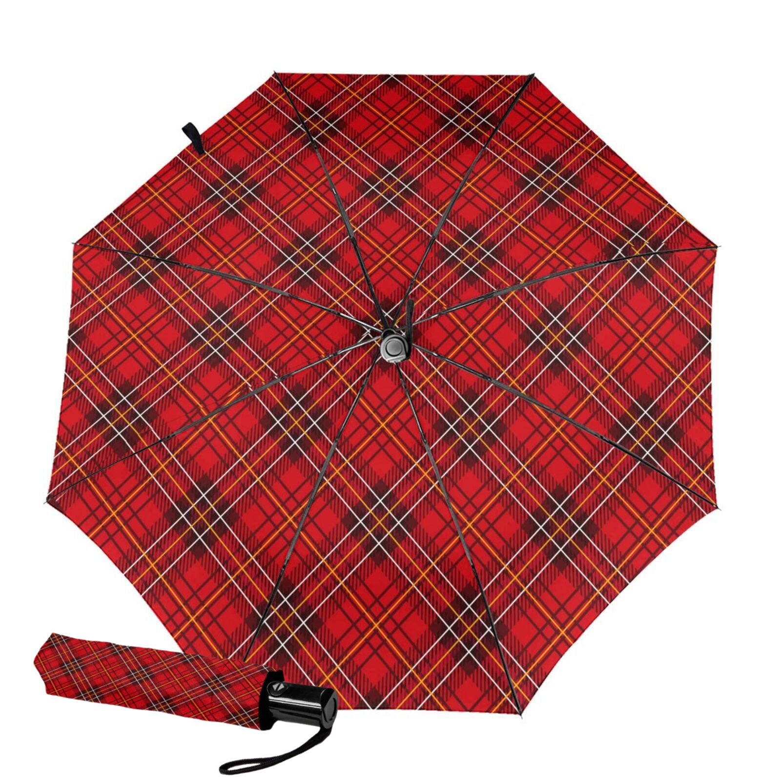 Faltbarer Reiseschirm mit rot kariertem Aufdruck innen
