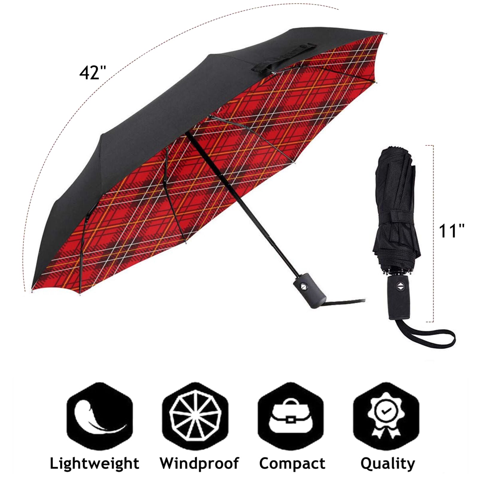 - Dieser bedruckte, faltbare Regenschirm ist auf der Innenseite des Schirms mit einem klassischen rotkarierten Muster bedruckt.