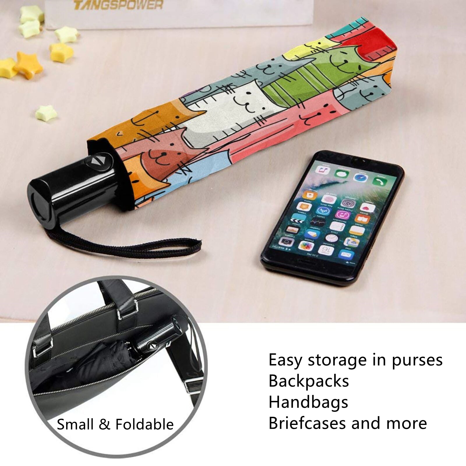 - Dieser bedruckte faltbare Regenschirm ist auf der Innenseite des Schirmdachs mit einem lustigen Cartoon-Katzen-Designmuster bedruckt.