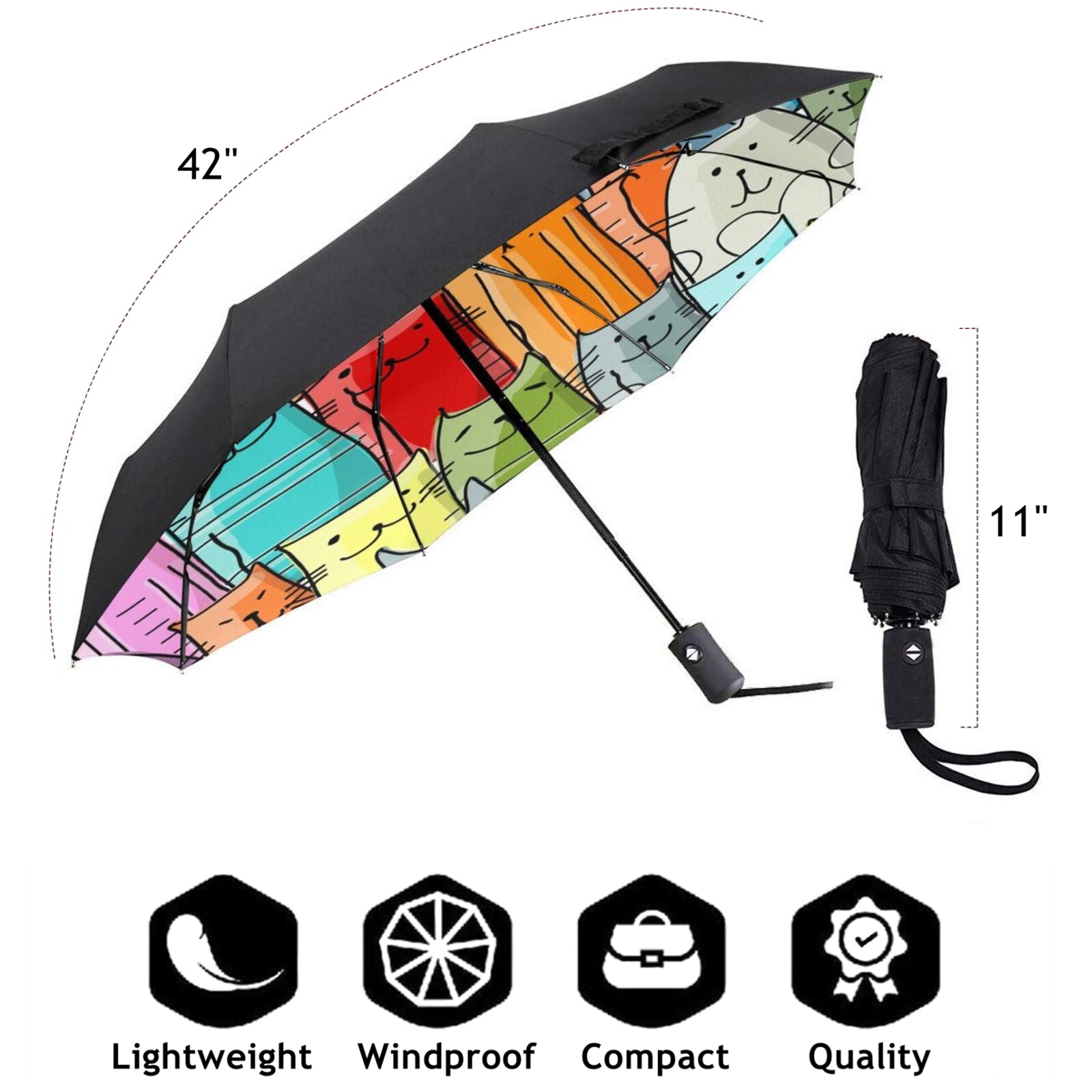 Faltbarer Regenschirm mit lustigem Katzenaufdruck innen