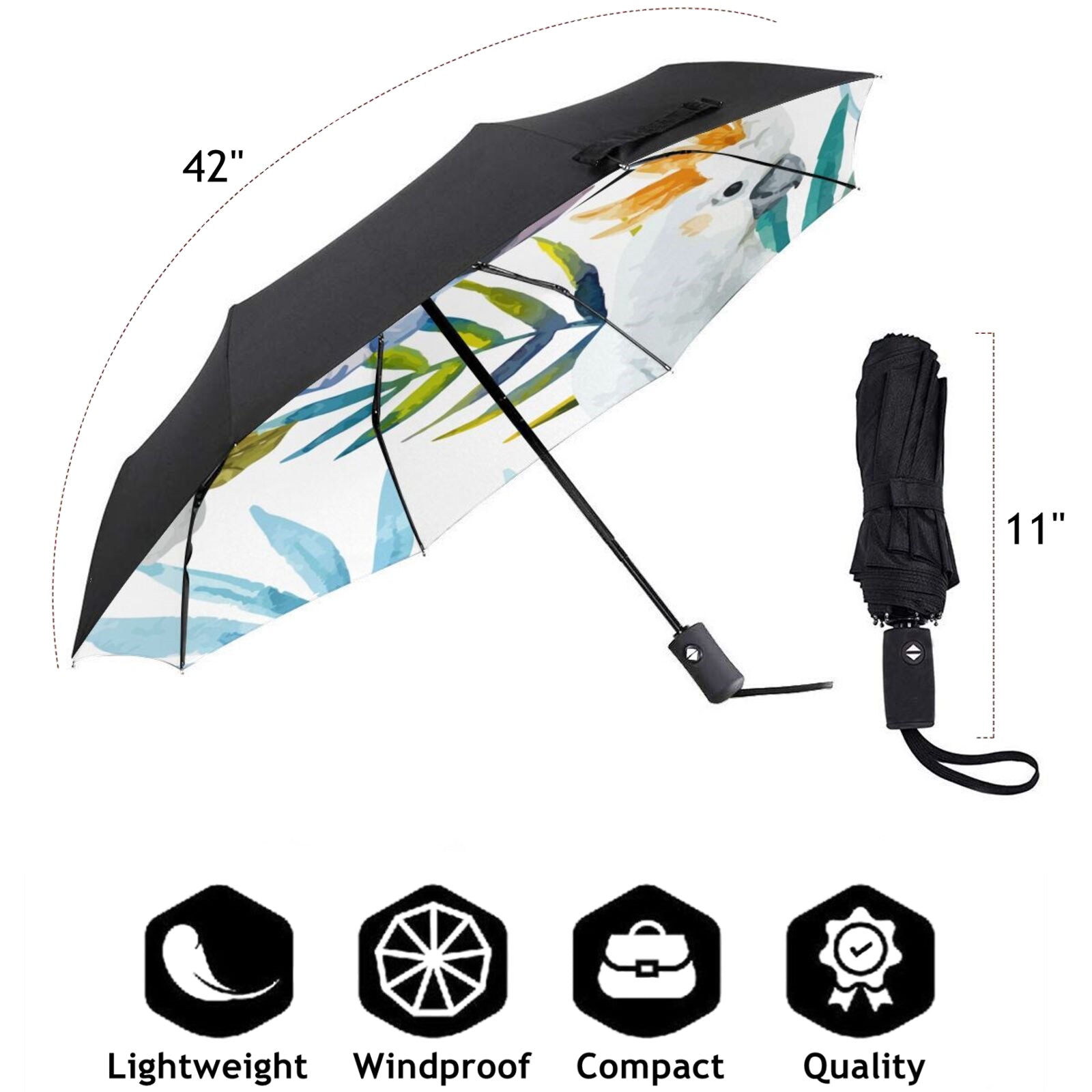 Faltbarer Regenschirm mit weißem Papageiendruck innen