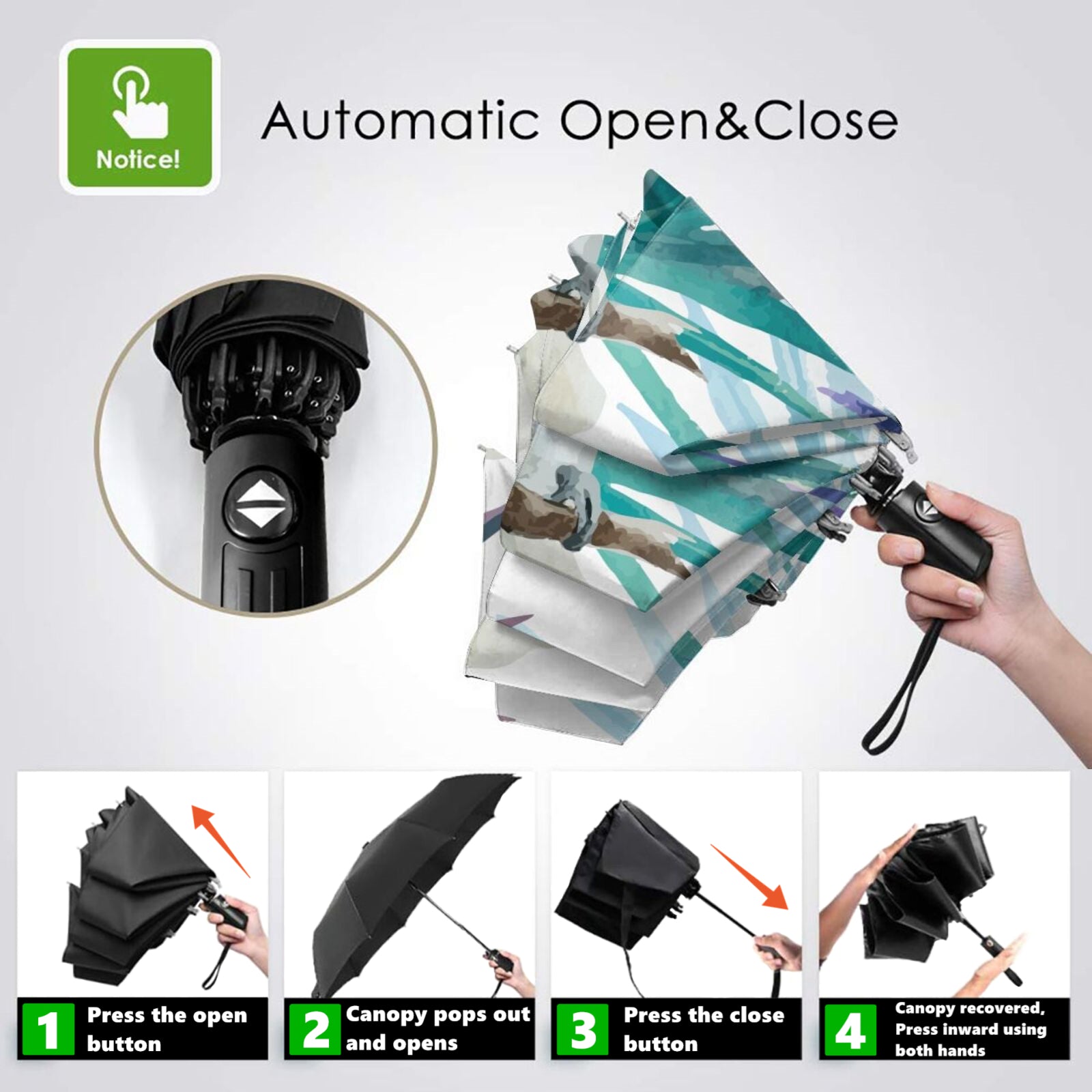 - Dies ist ein superhochwertiger und multifunktionaler Taschenschirm mit automatischem Öffnen und Schließen, der sich sowohl für den Einsatz an sonnigen als auch an regnerischen Tagen eignet.