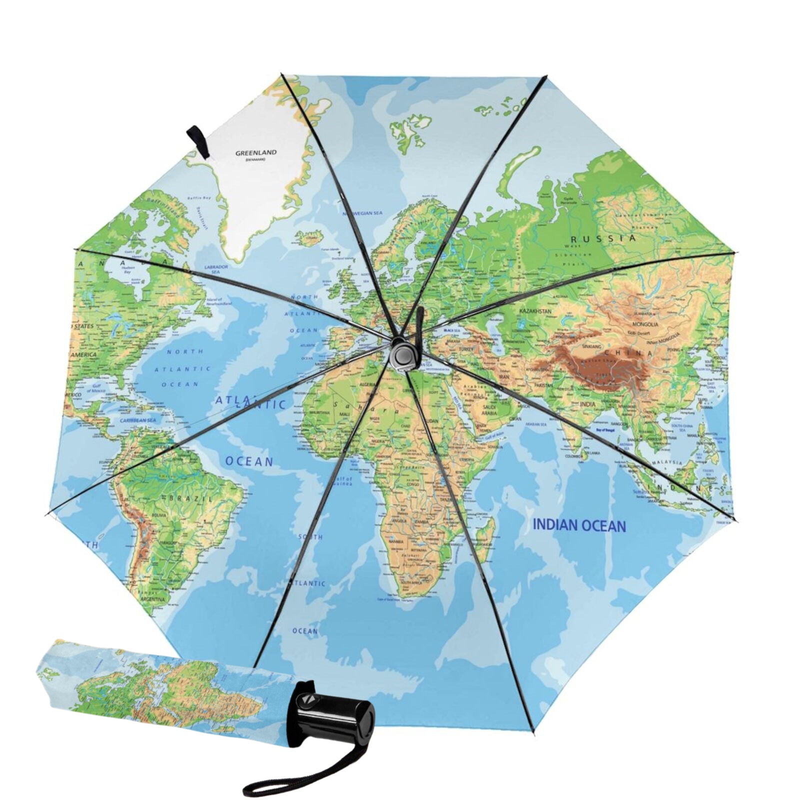 - Dieser bedruckte faltbare Regenschirm ist auf der Innenseite des Schirmdachs mit einem wunderschönen Weltkartenmuster bedruckt.