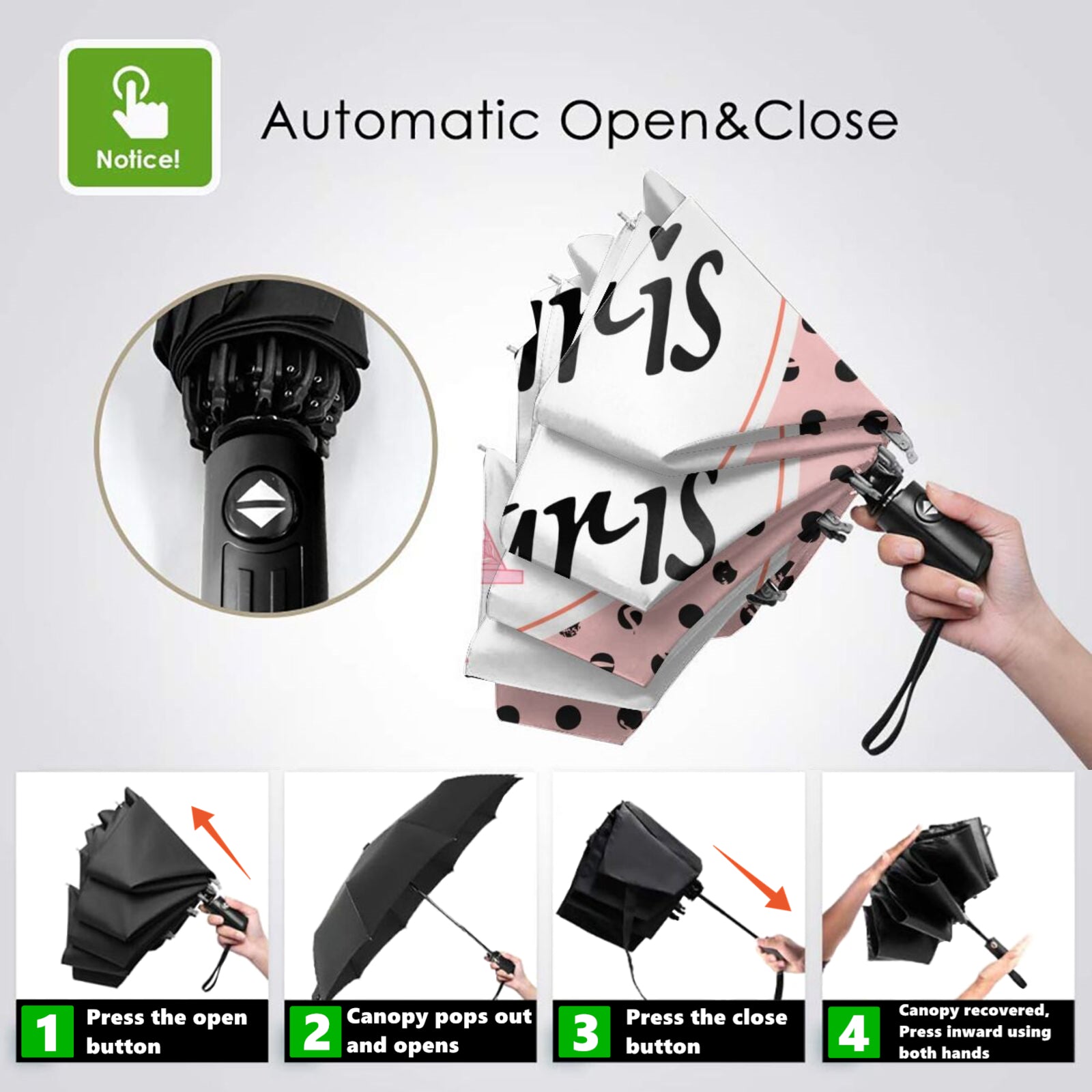 - Dies ist ein superhochwertiger und multifunktionaler Taschenschirm mit automatischem Öffnen und Schließen, der sich sowohl für den Einsatz an sonnigen als auch an regnerischen Tagen eignet.