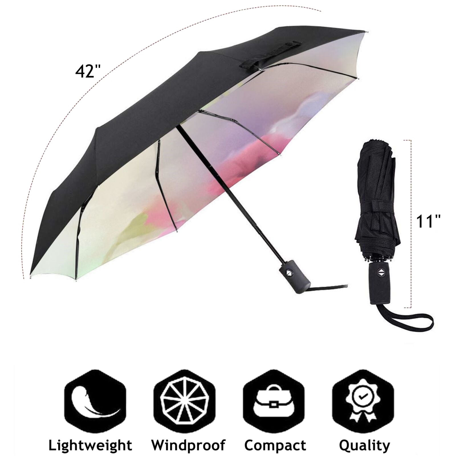 - Dieser hochwertige bedruckte Taschenschirm ist sehr robust, windbeständig, praktisch und einfach zu bedienen. Das Rahmensystem besteht aus einem hochwertigen Aluminiummechanismus, hochfesten Fiberglasrippen, einer hochfesten Stahlstange und einem verschleißfesten Gummigriff.