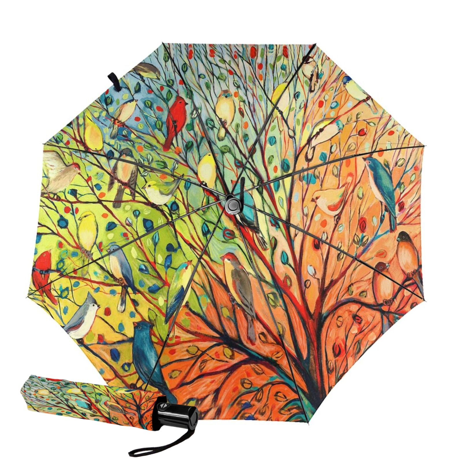 - Dieser bedruckte, faltbare Regenschirm ist auf der Innenseite des Schirmdachs mit einem wunderschönen Vogelmuster bedruckt.