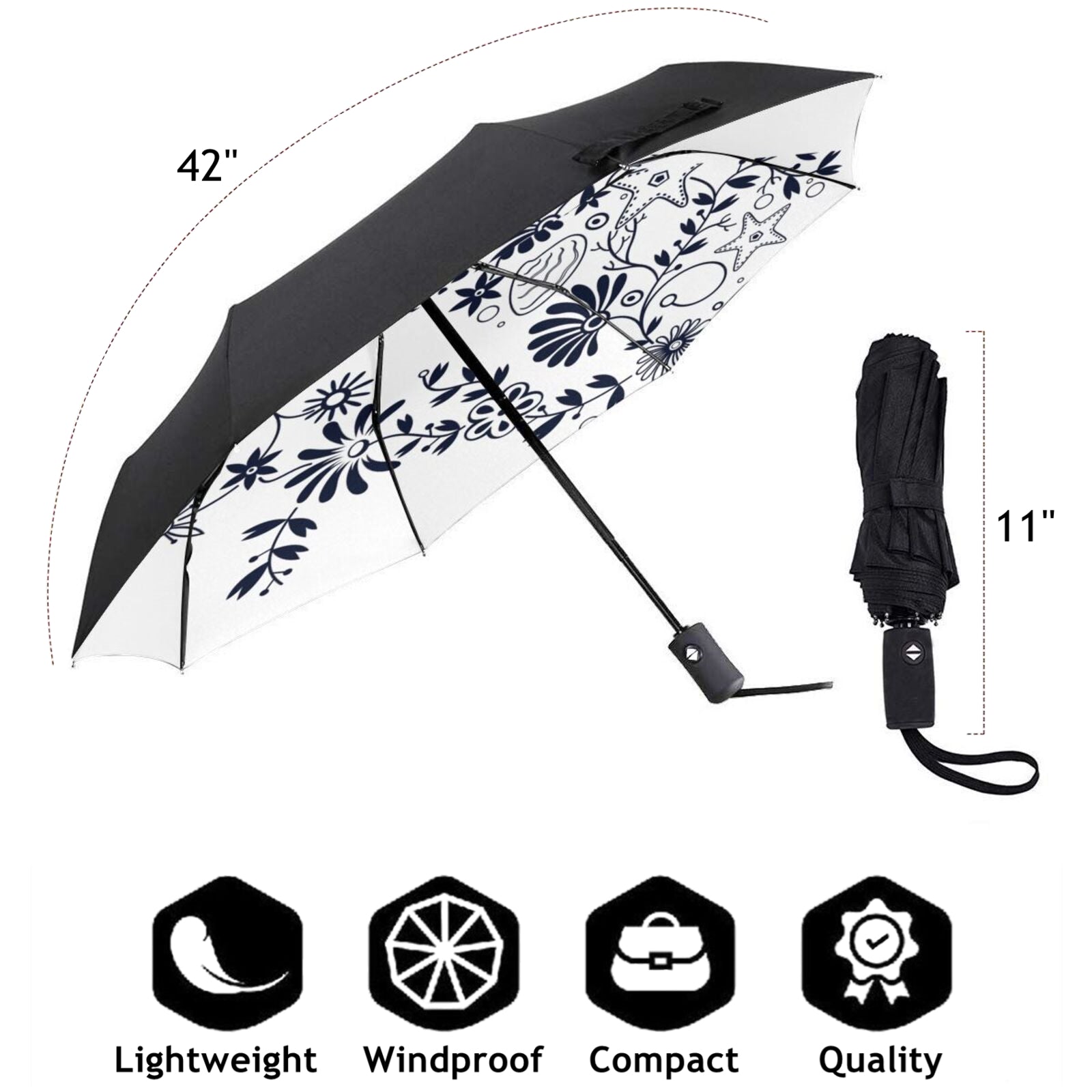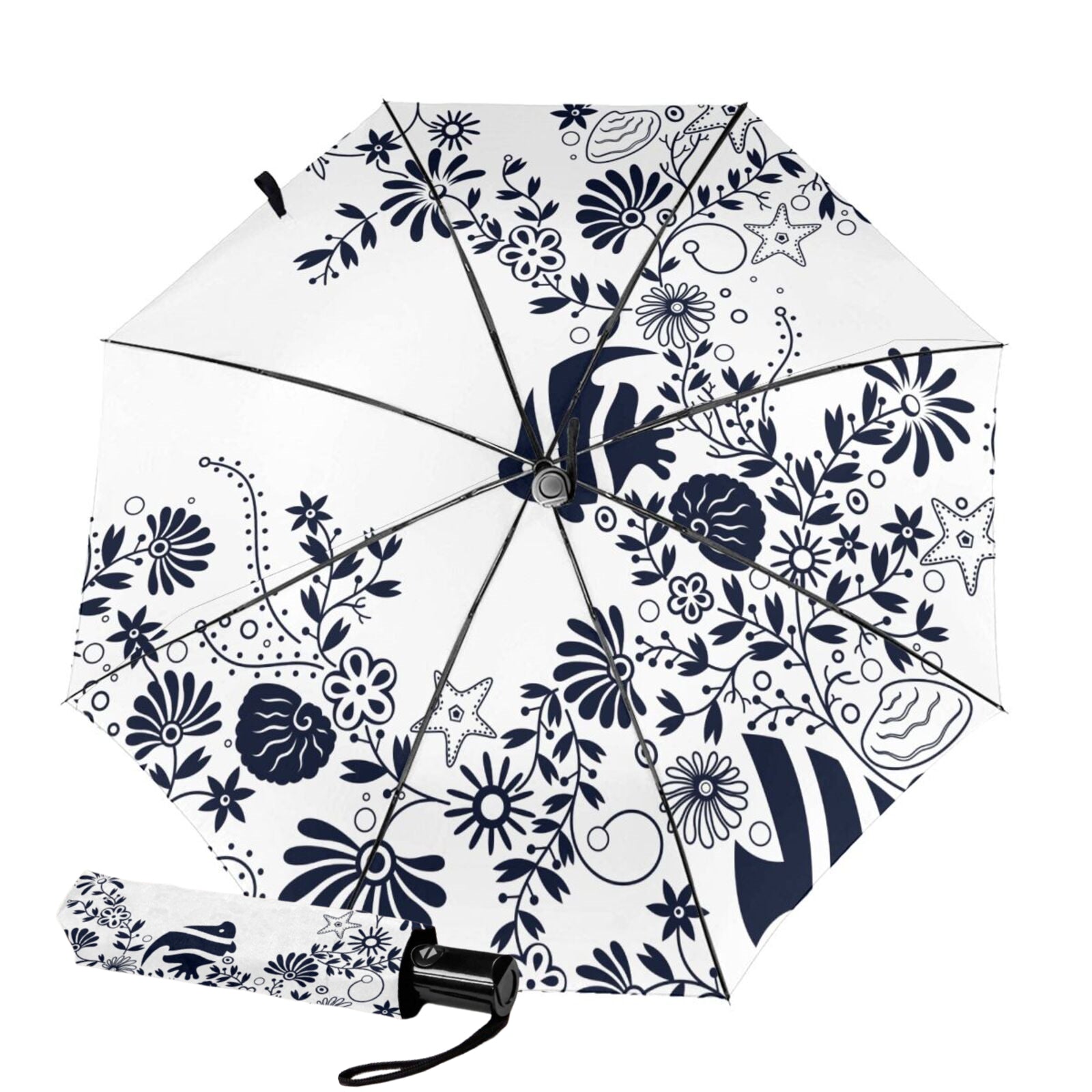 - Dieser bedruckte, faltbare Regenschirm ist auf der Innenseite des Schirmdachs mit einem wunderschönen Seetang- und Fischmuster bedruckt.