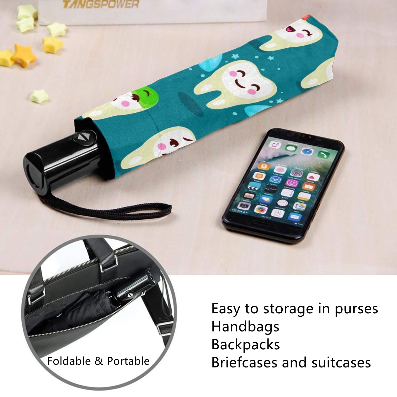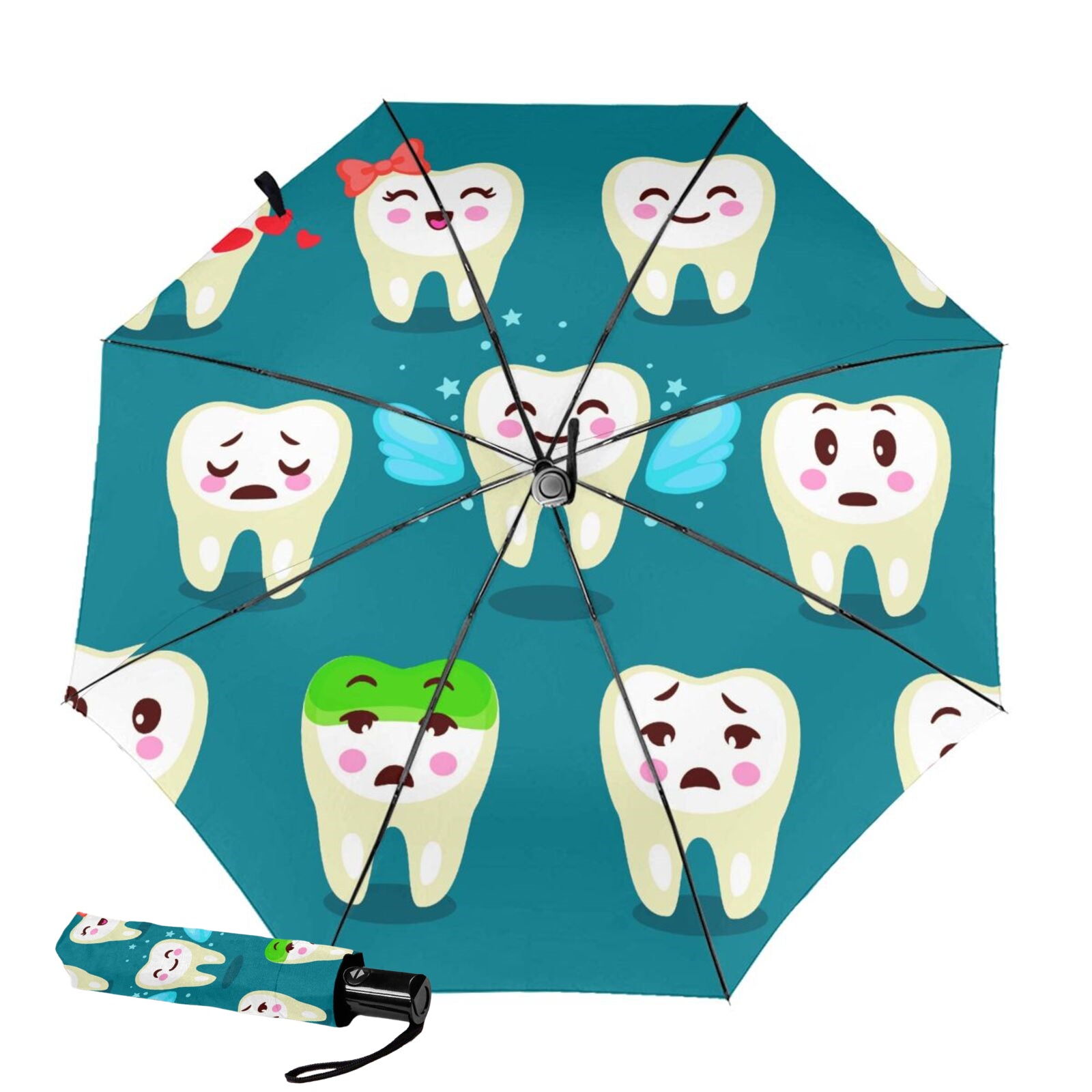 - Dieser bedruckte faltbare Regenschirm ist auf der Innenseite des Schirmdachs mit einem lustigen Zahnmuster bedruckt.
