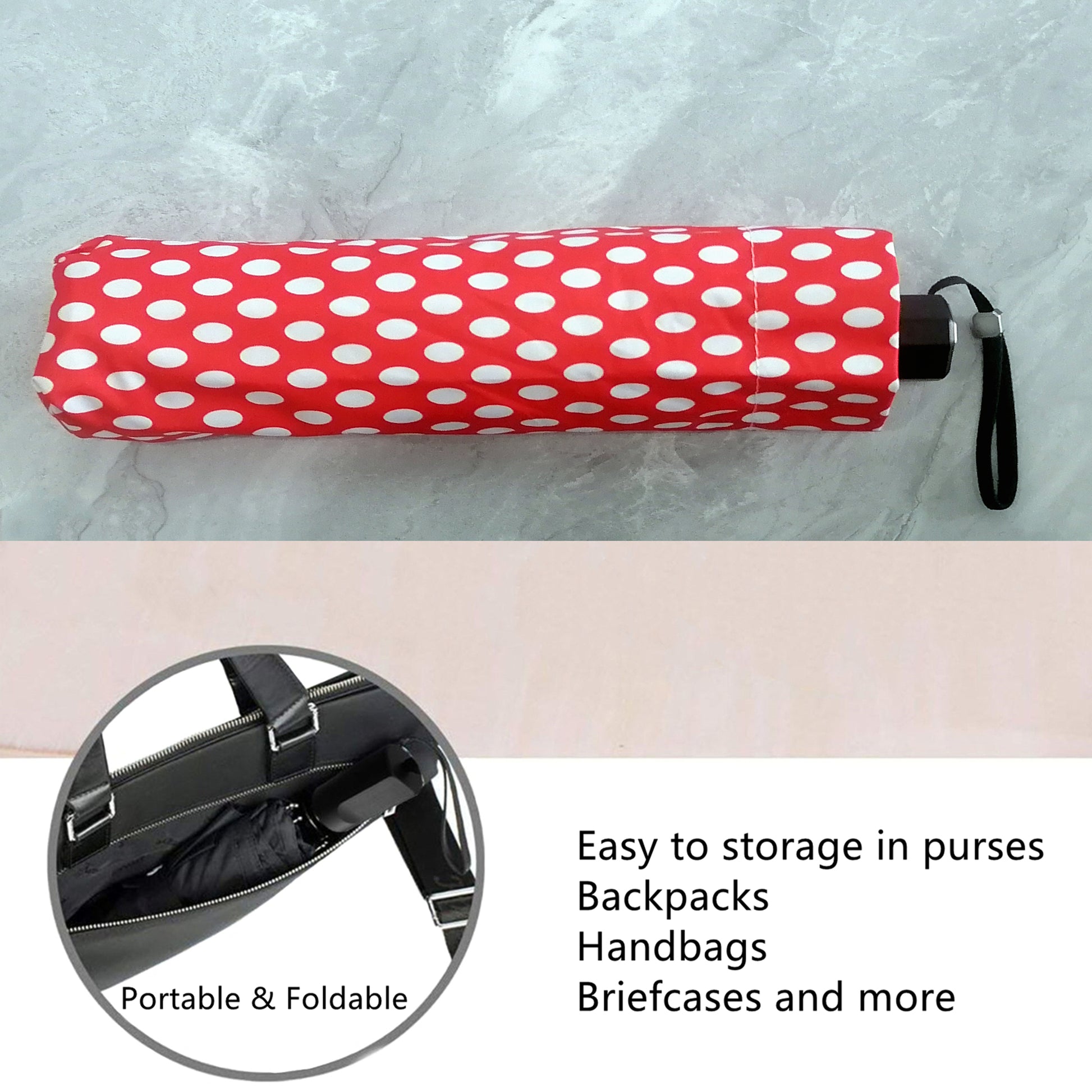 - Dieser hübsche Mini-Regenschirm mit manueller Öffnung hat auf der Innenseite des Schirms ein klassisches rot-weißes Punktemuster aufgedruckt, das perfekt für Frauen und Mädchen ist.