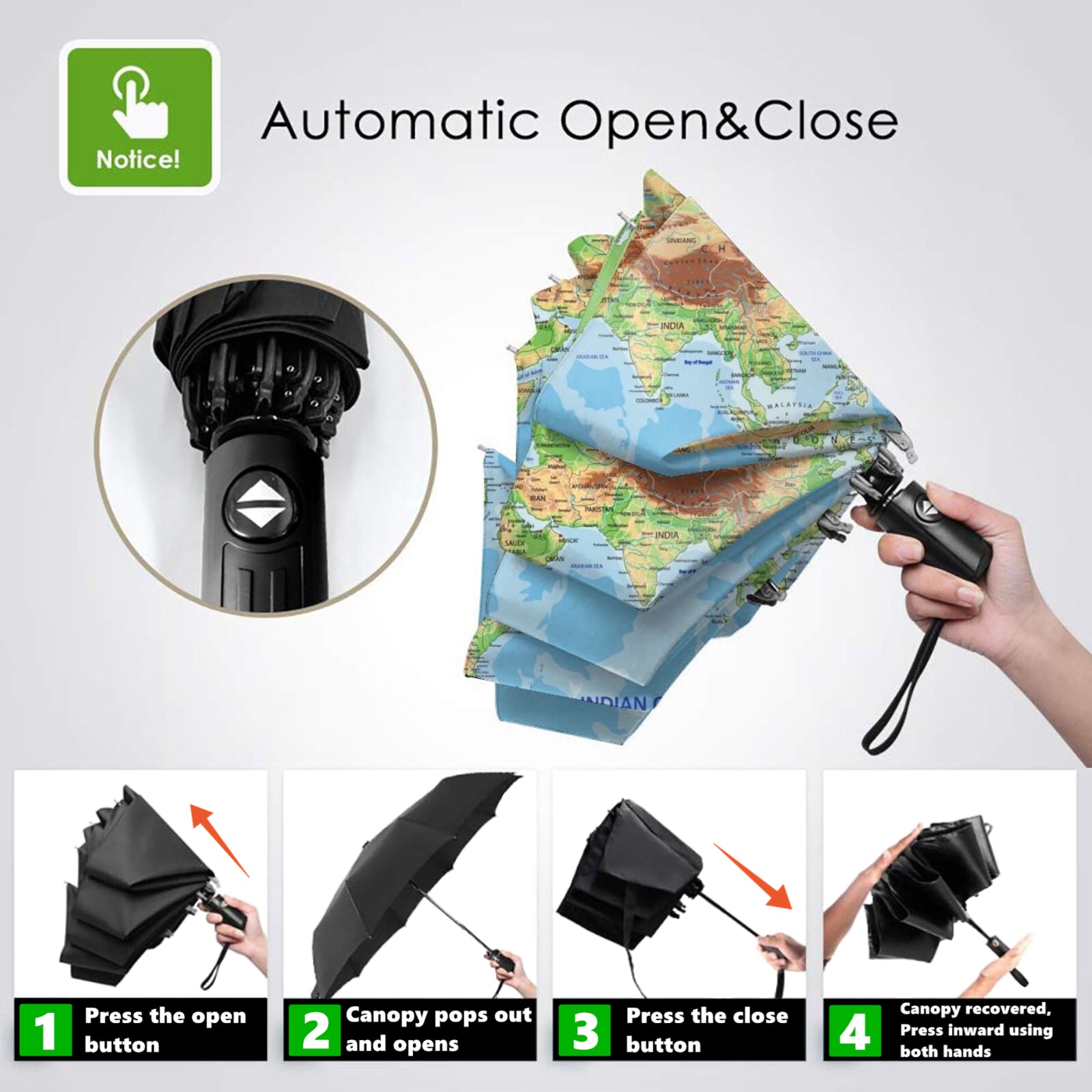 - Dies ist ein kompakter, vielseitiger Reiseschirm von höchster Qualität mit automatischem Öffnen und Schließen, der sich sowohl für den Einsatz an sonnigen als auch an regnerischen Tagen eignet.