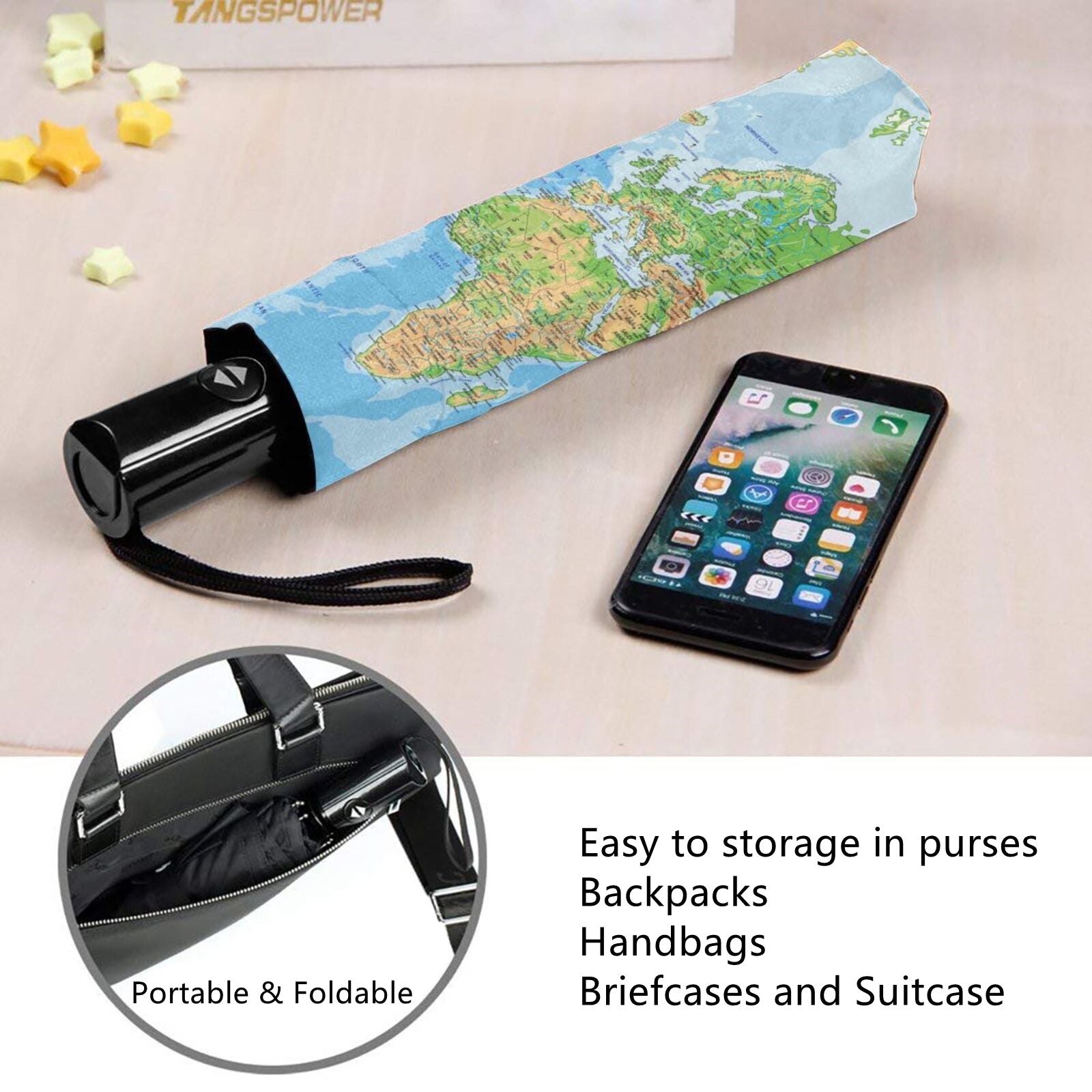 - Die gesamte Aufbewahrungslänge beträgt im zusammengeklappten Zustand des Schirms nur 11 Zoll und das Nettogewicht beträgt nur 350 Gramm. Er passt problemlos in Ihre Handtasche, Ihren Rucksack, Ihre Aktentasche oder die Aufbewahrungsbox im Auto usw.