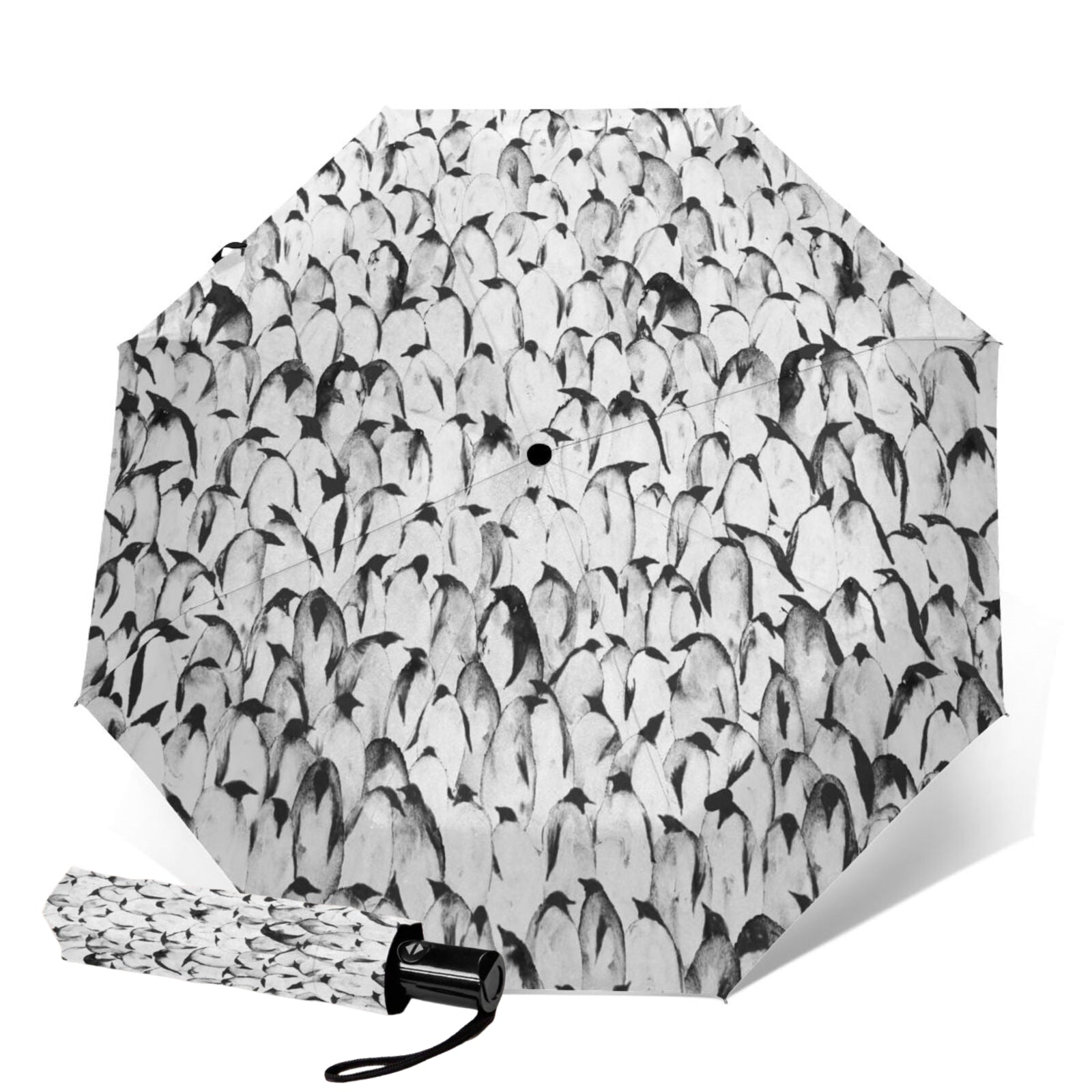 - Auf der Außenseite dieses Taschenschirms ist ein klassisches Pinguinmuster aufgedruckt.