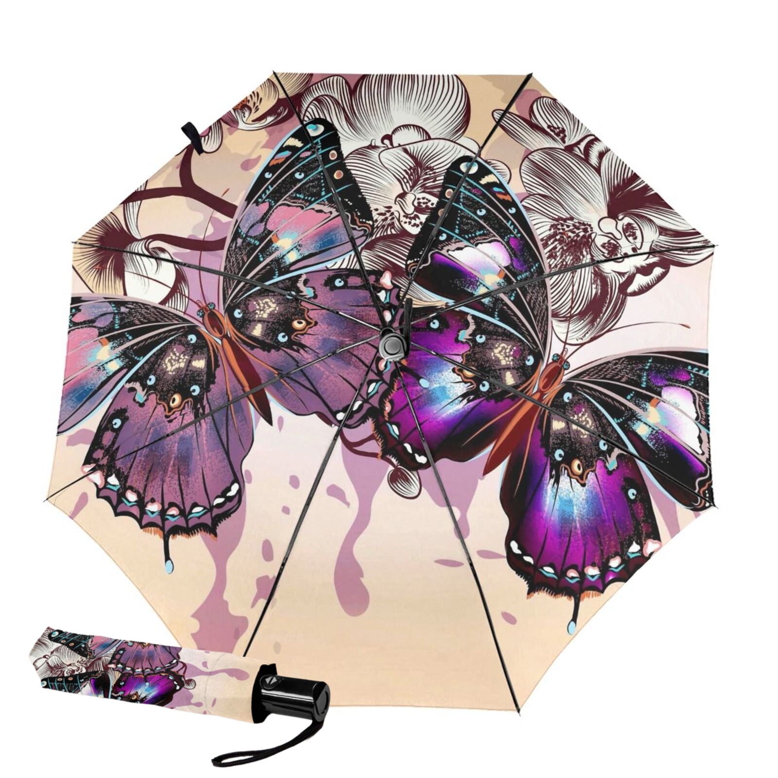 Lila Faltbarer Regenschirm mit Schmetterlingsdruck auf der Innenseite
