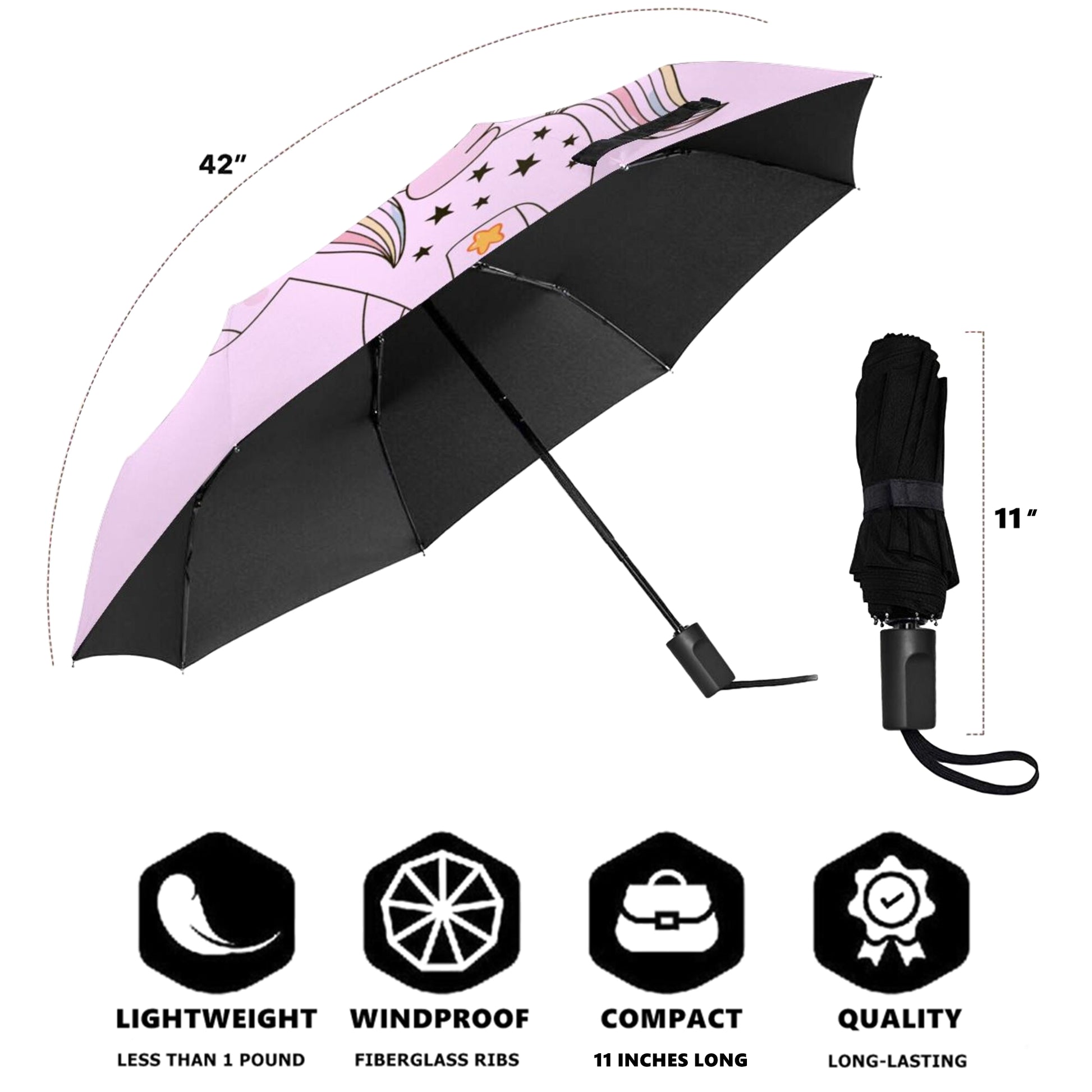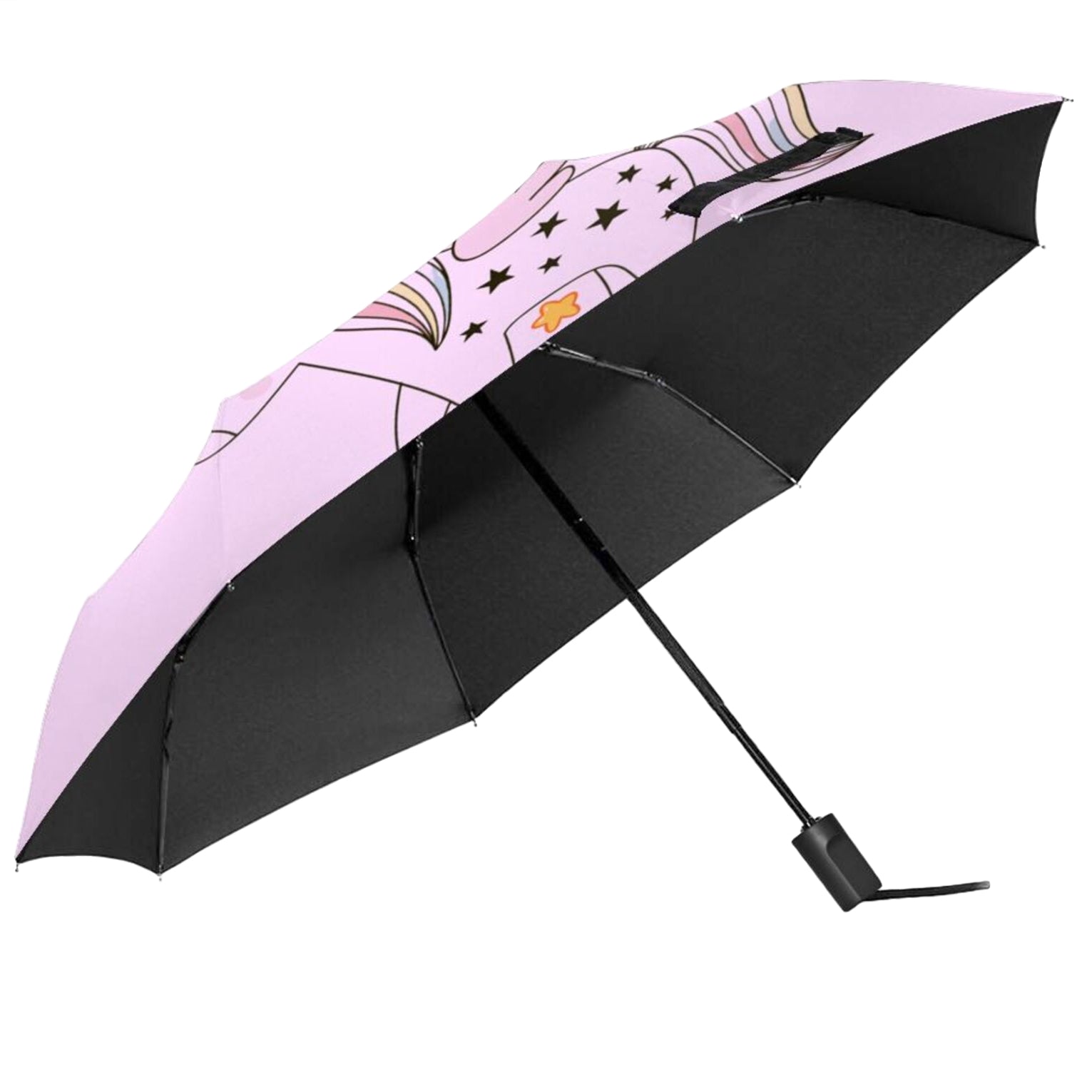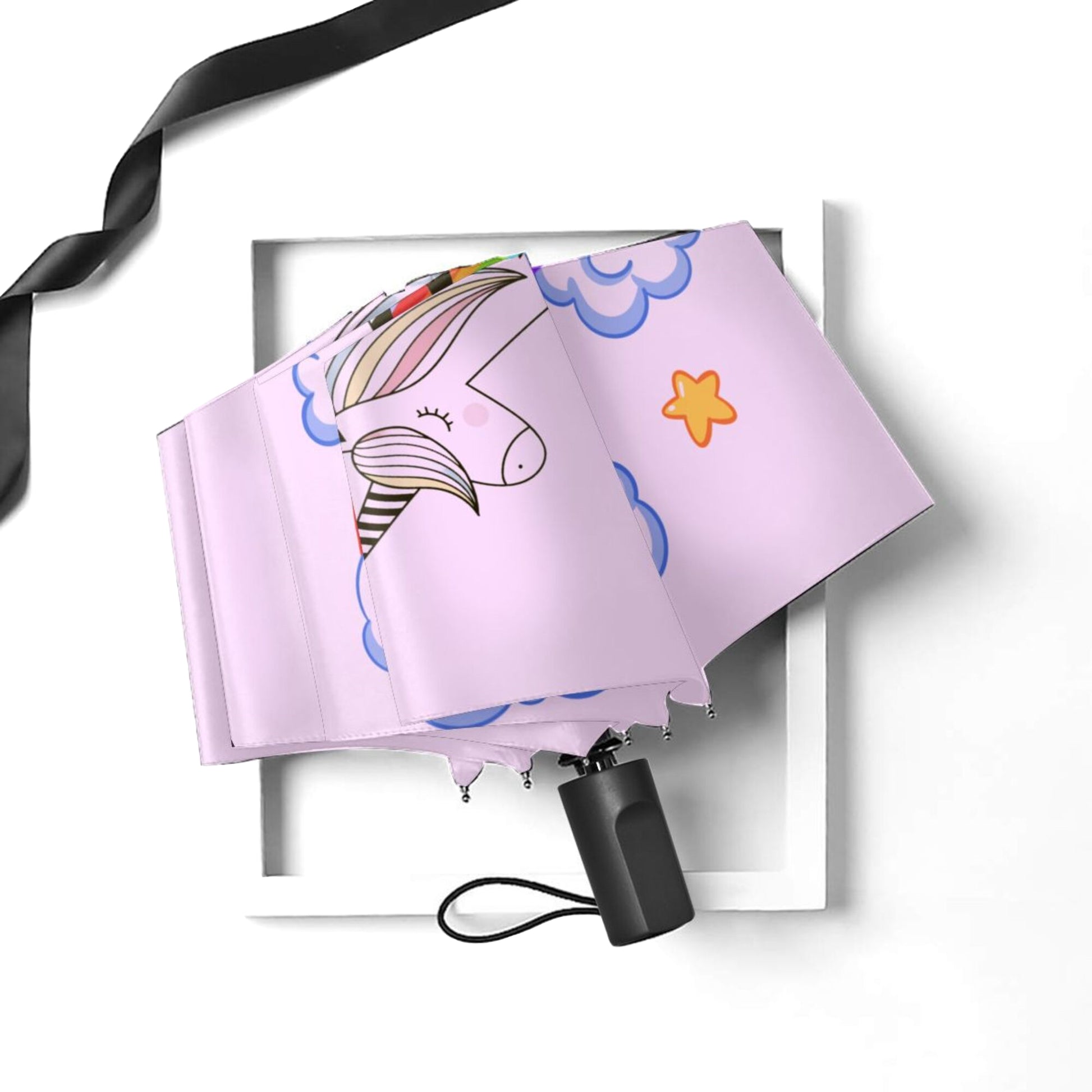 - Dieser manuell faltbare Regenschirm ist auf der Außenseite des Schirms mit einem klassischen Regenbogen-Einhorn-Design bedruckt.