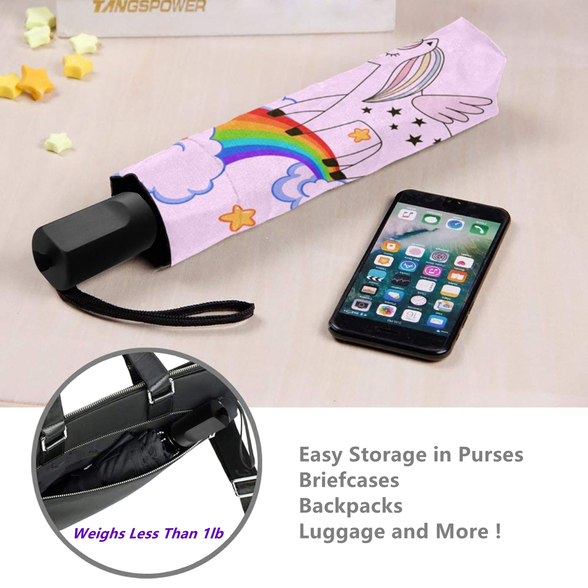 Kompakter Regenschirm mit manueller Öffnung und Regenbogen-Einhorn