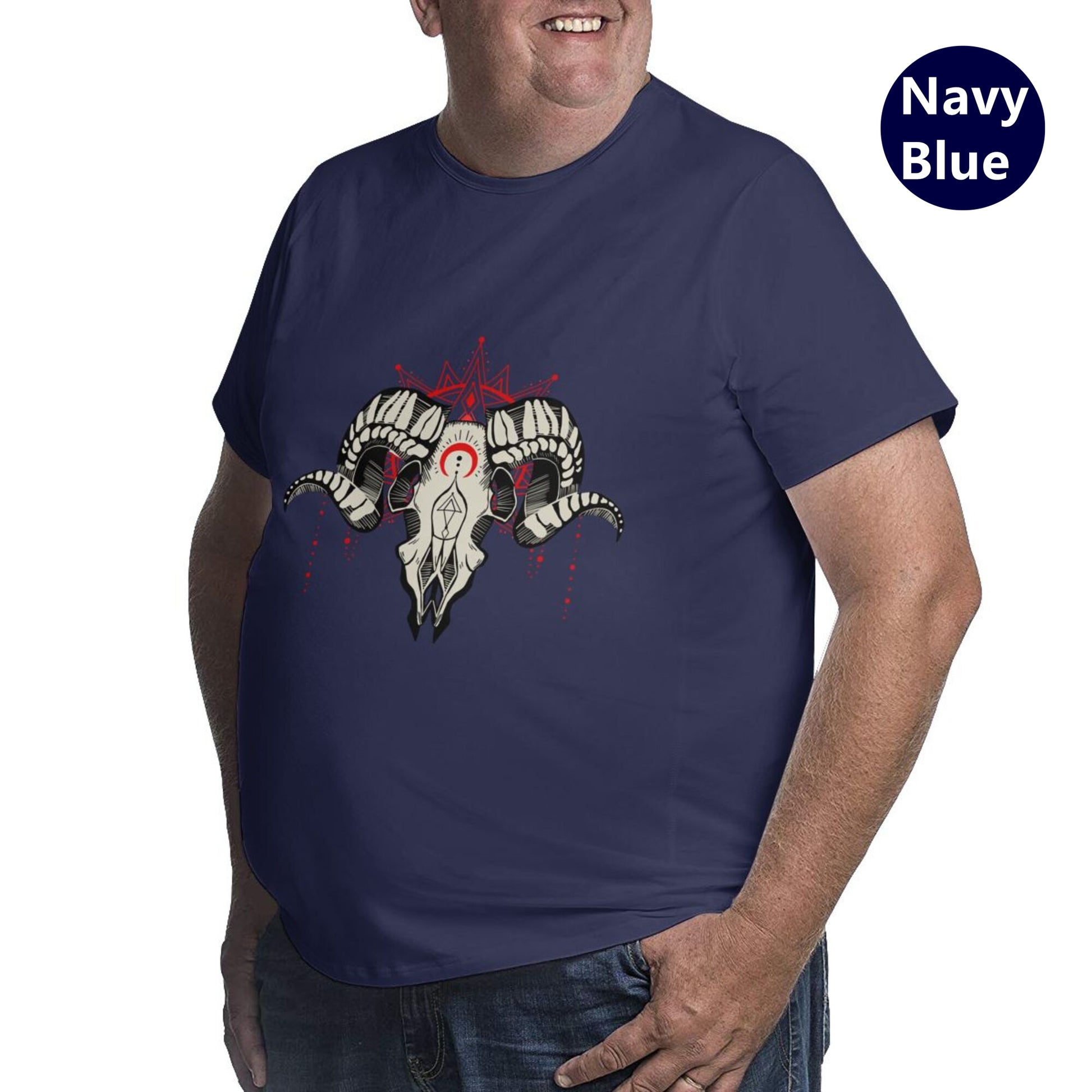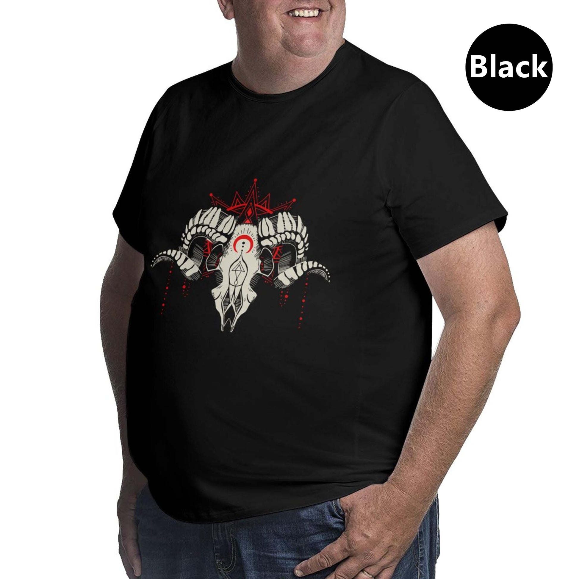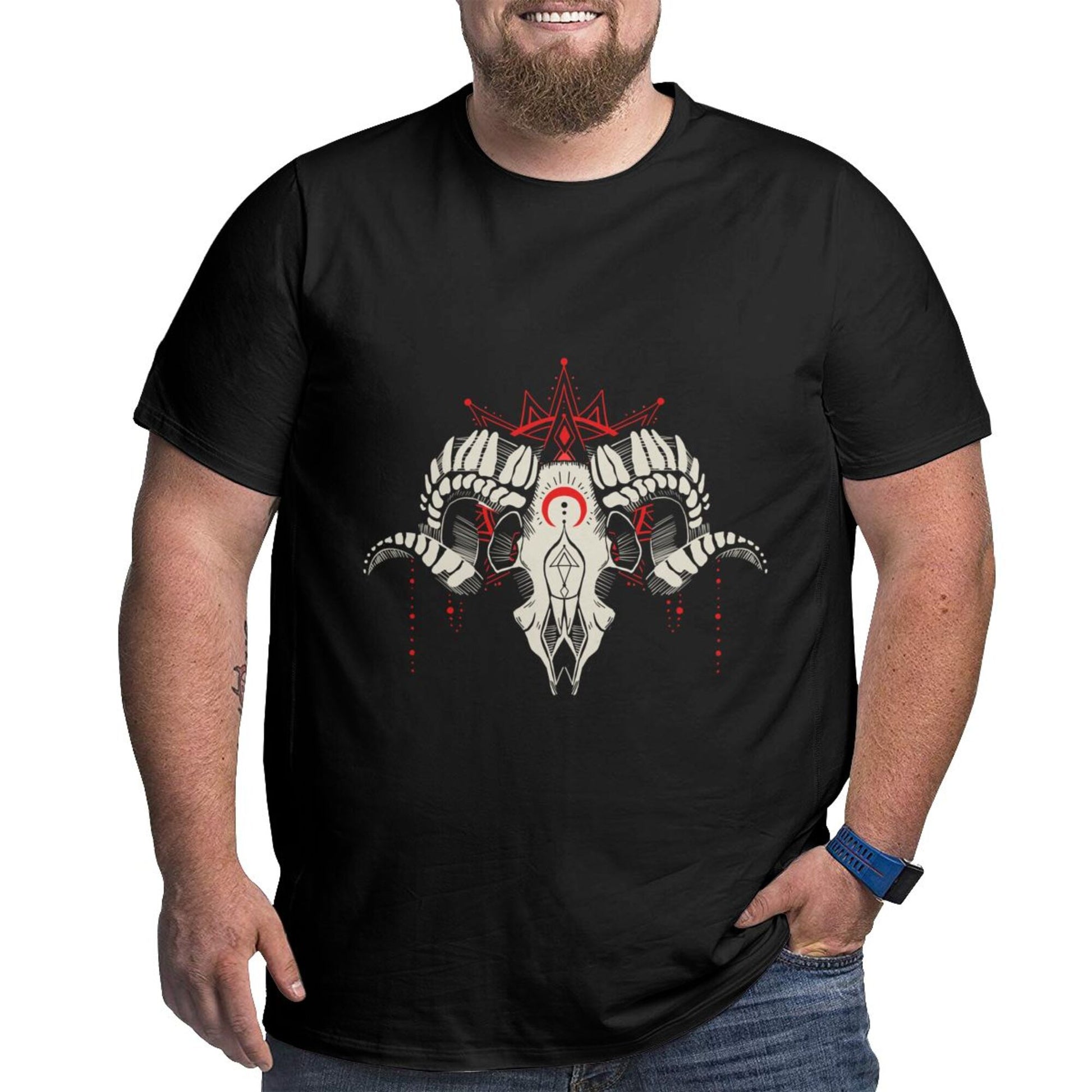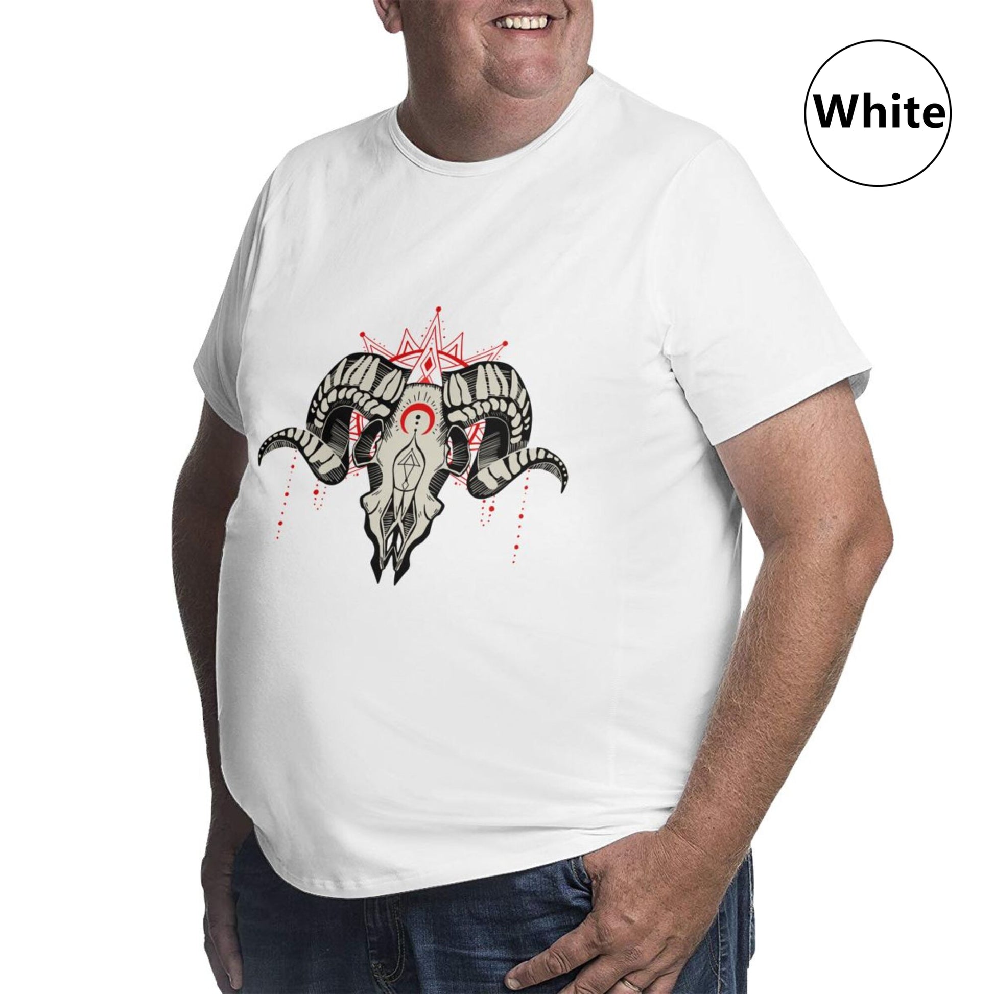 Our large-sized men's T-shirts are made of high-quality 100% cotton, with a soft and comfortable hand feel, slightly elastic, moderate length, loose fit, comfortable and fashionable, simple and practical, not easy to shrink, durable and trendy. The ram skull pattern design is printed in high-definition digital format and is not prone to fading.