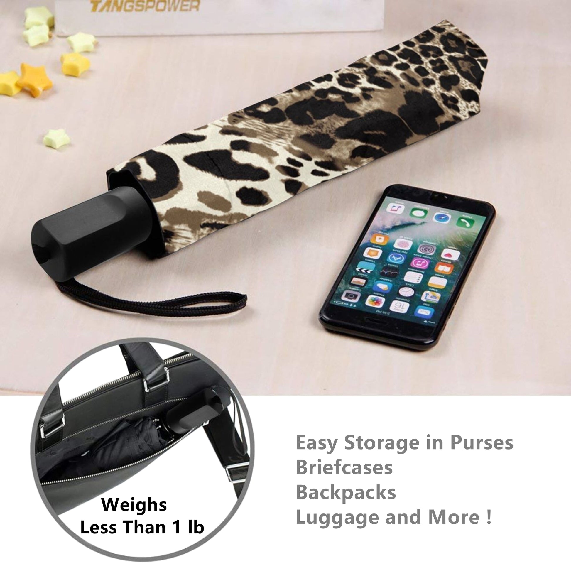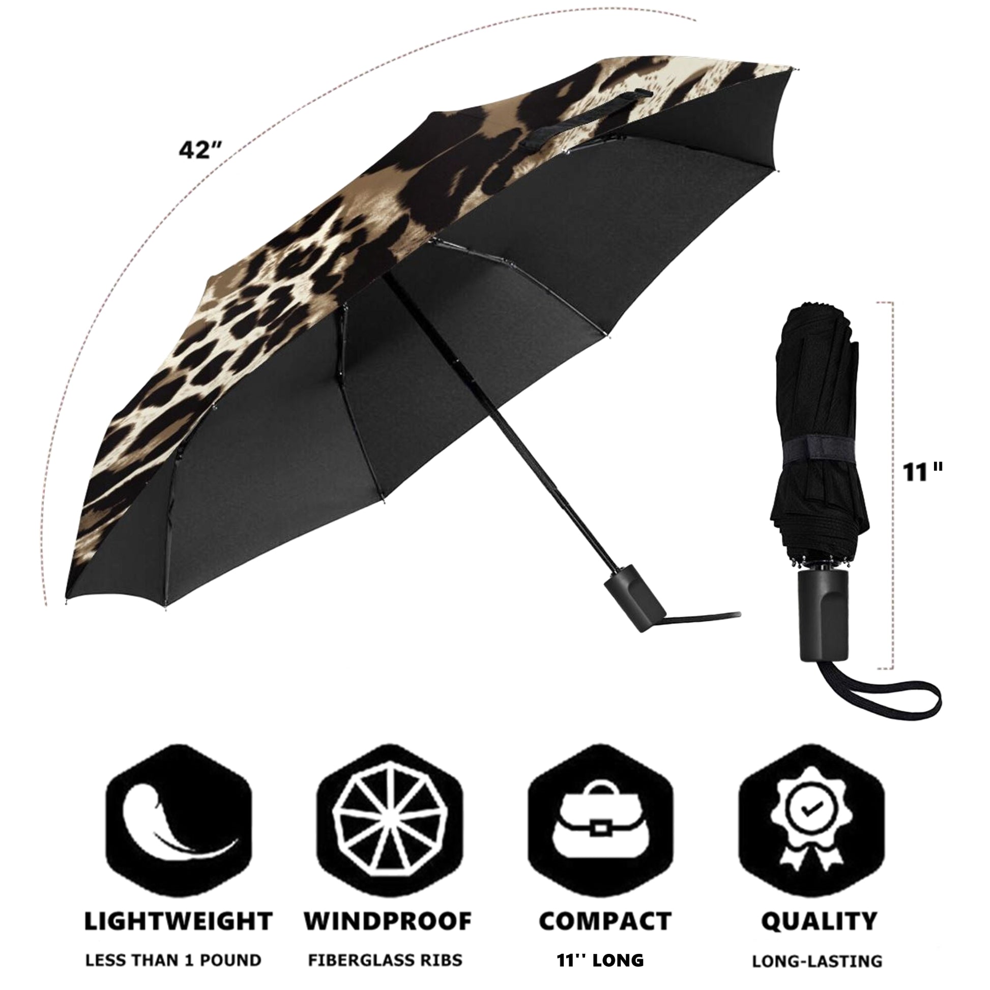 - Dieser manuell faltbare Regenschirm ist auf der Außenseite des Schirms mit einem klassischen silbernen Leopardenmuster bedruckt.