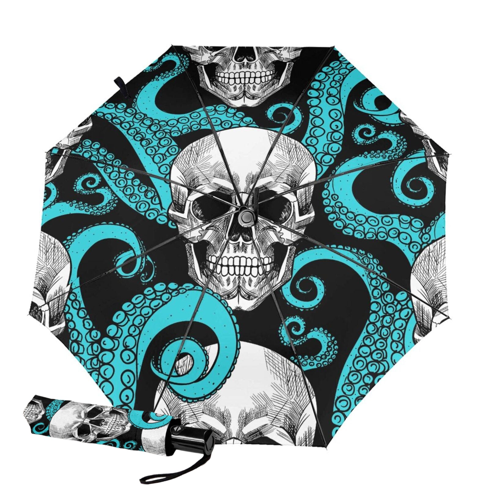 - Dieser bedruckte faltbare Regenschirm ist auf der Innenseite des Schirmdachs mit einem klassischen Totenkopfmuster bedruckt.