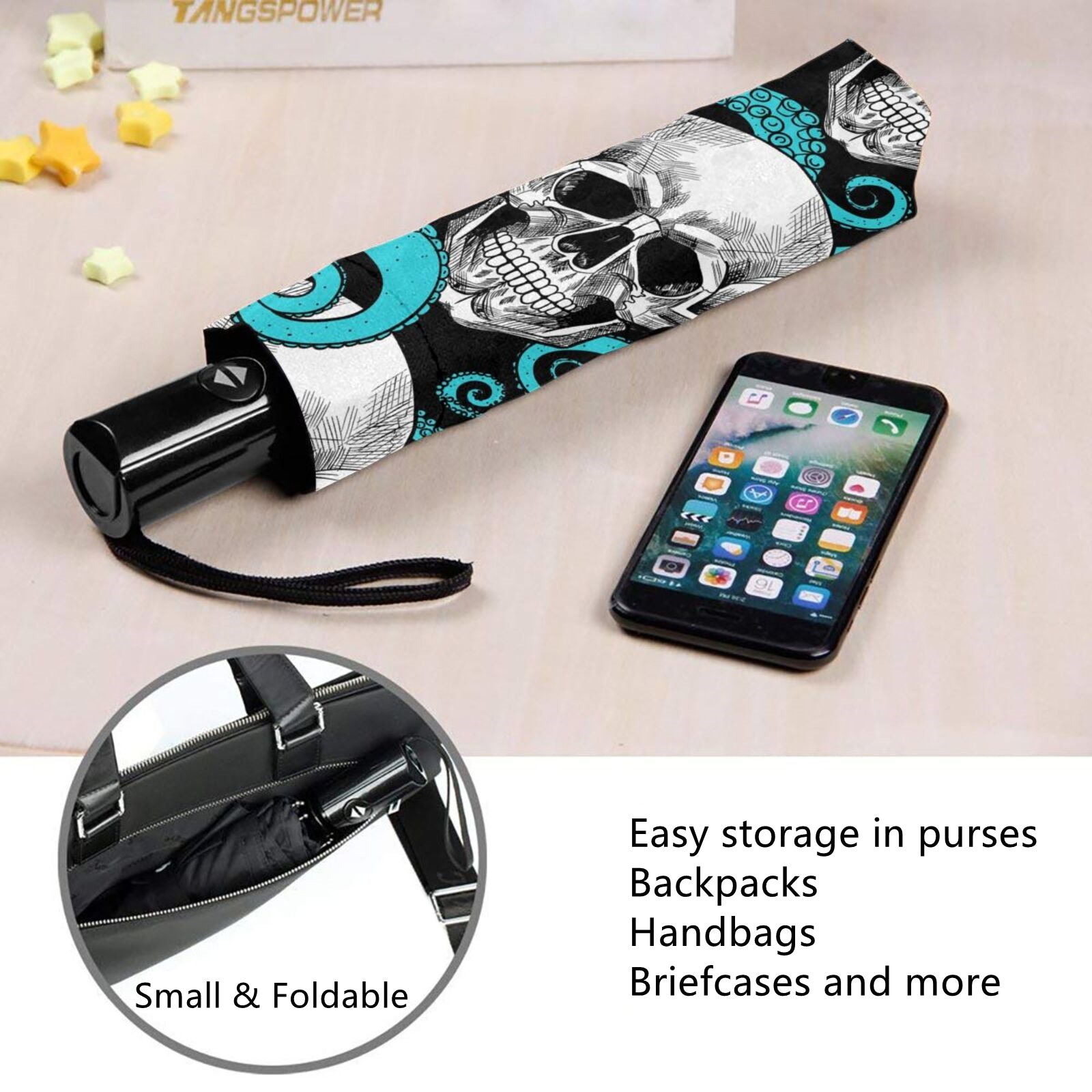 Kleiner faltbarer Regenschirm mit Totenkopf-Print auf der Innenseite