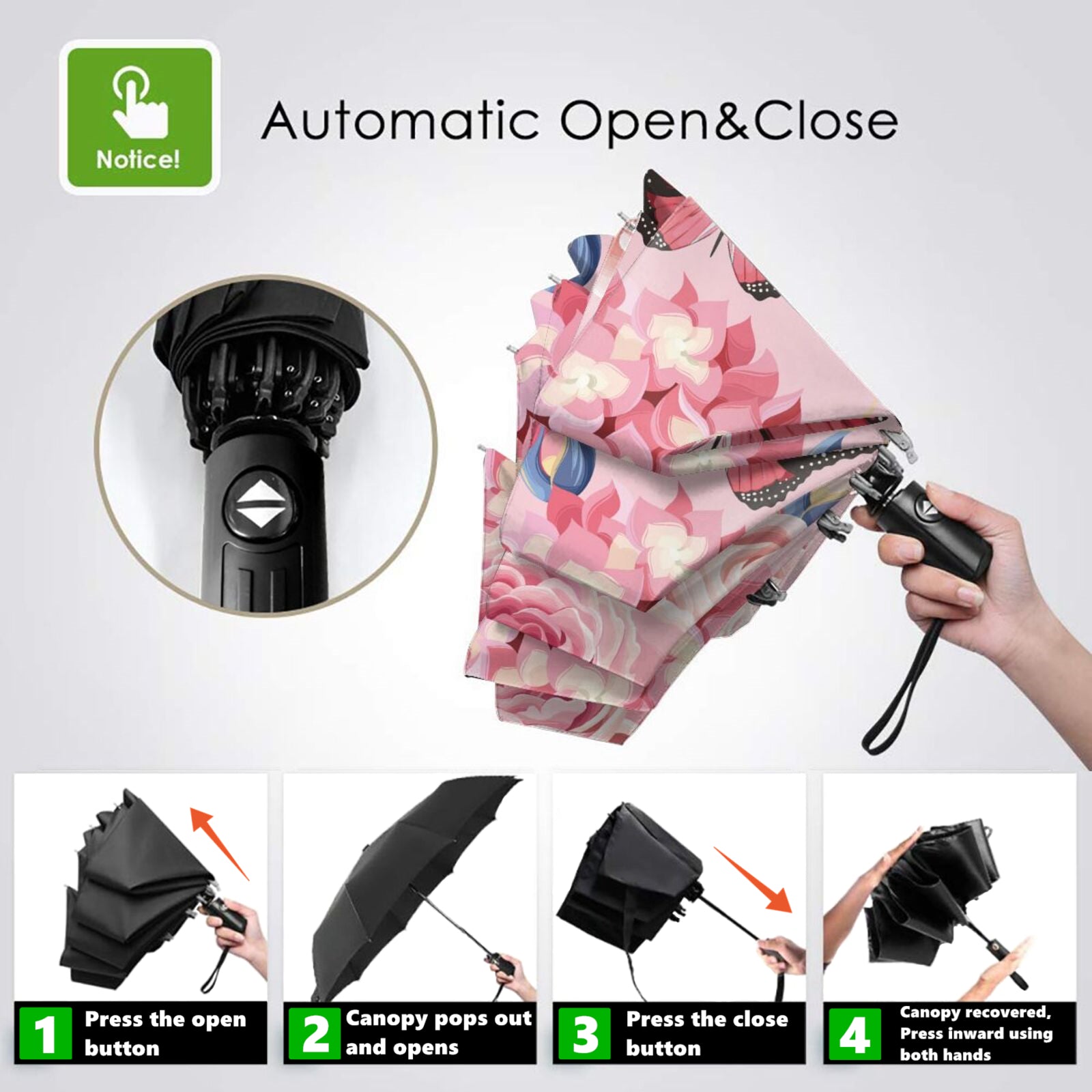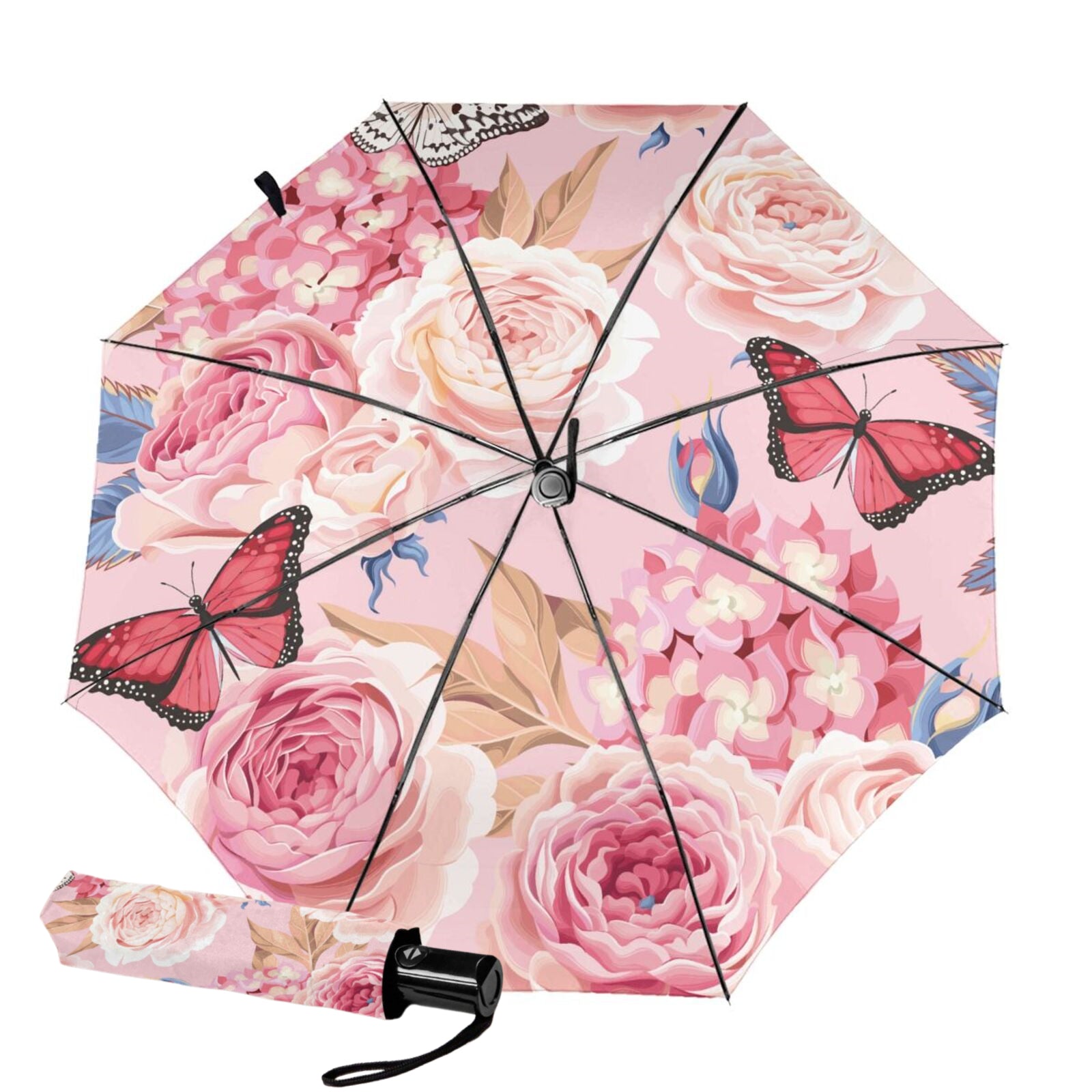 - Dieser bedruckte, faltbare Regenschirm ist auf der Innenseite des Schirmdachs mit einem wunderschönen Blumen- und Schmetterlingsmuster bedruckt.