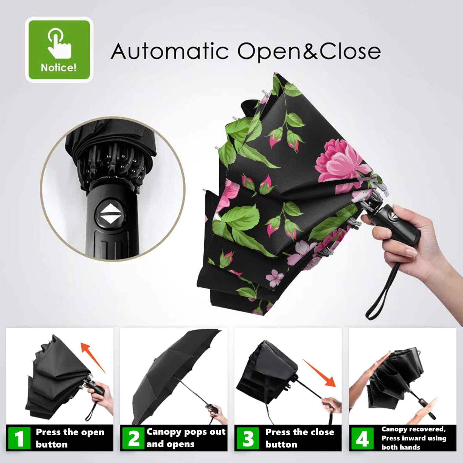 - Dies ist ein superhochwertiger und multifunktionaler Taschenschirm mit automatischem Öffnen und Schließen, der sich sowohl für den Einsatz an sonnigen als auch an regnerischen Tagen eignet.