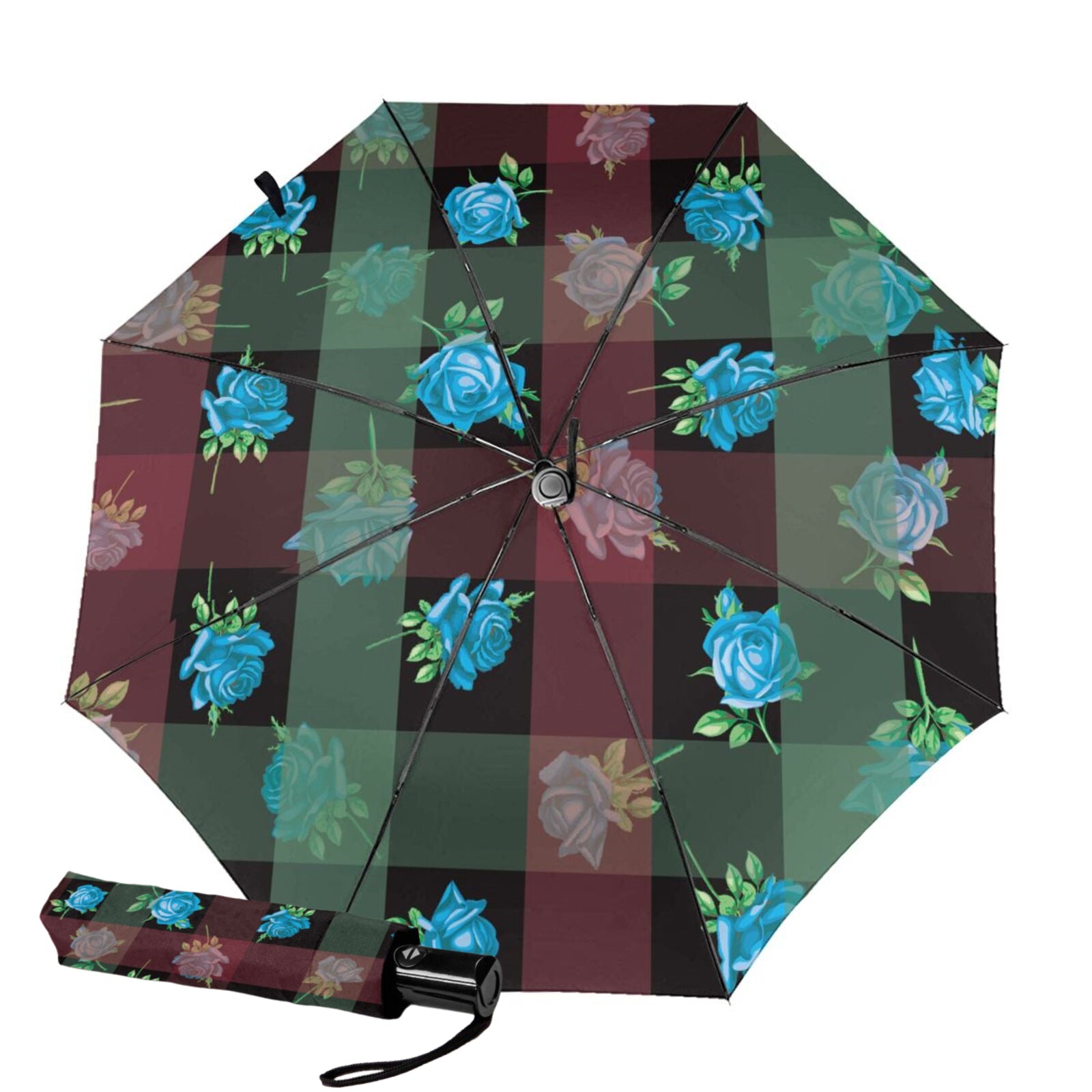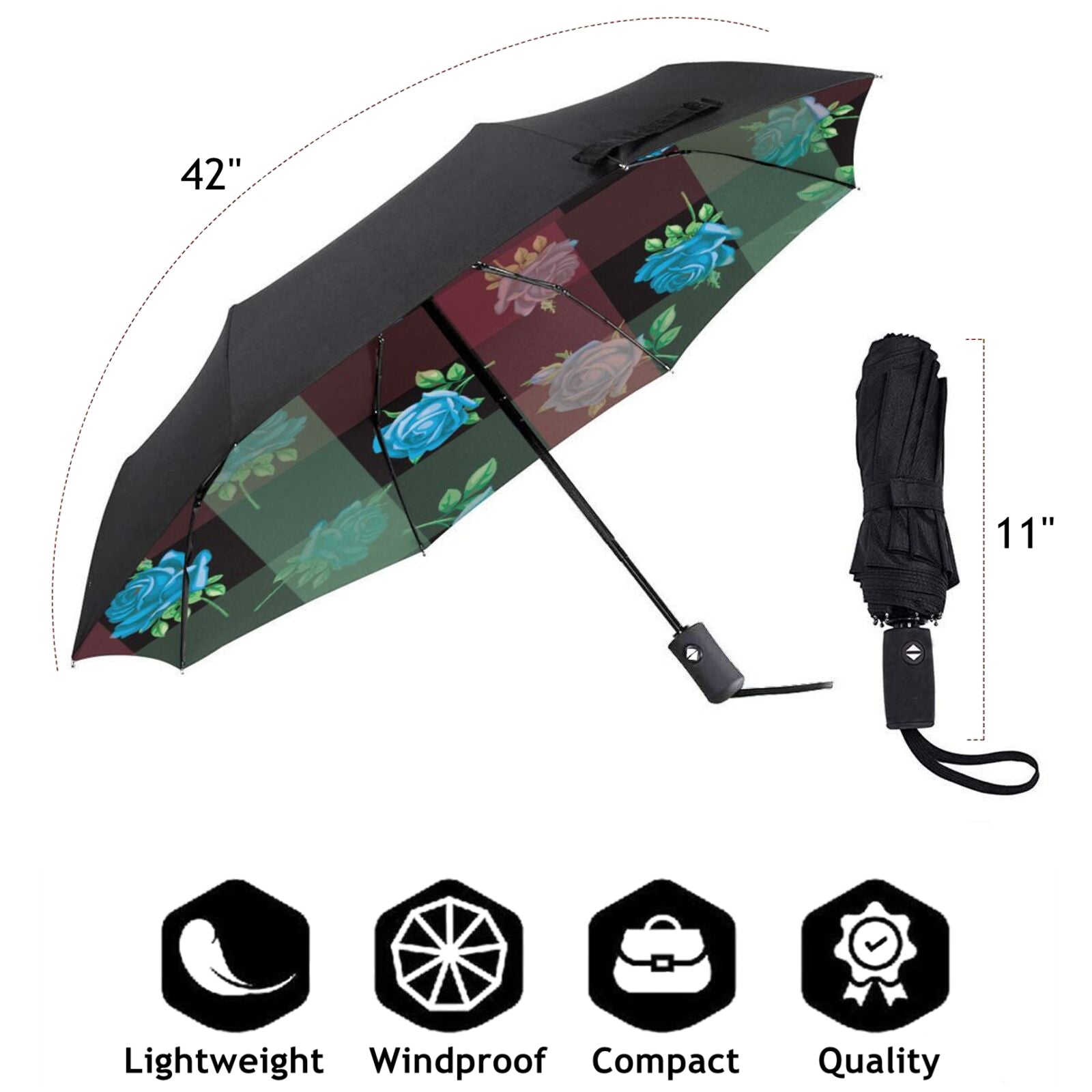 - Dieser bedruckte, faltbare Regenschirm ist auf der Innenseite des Schirms mit einem wunderschönen Karo- und Rosenmuster bedruckt.