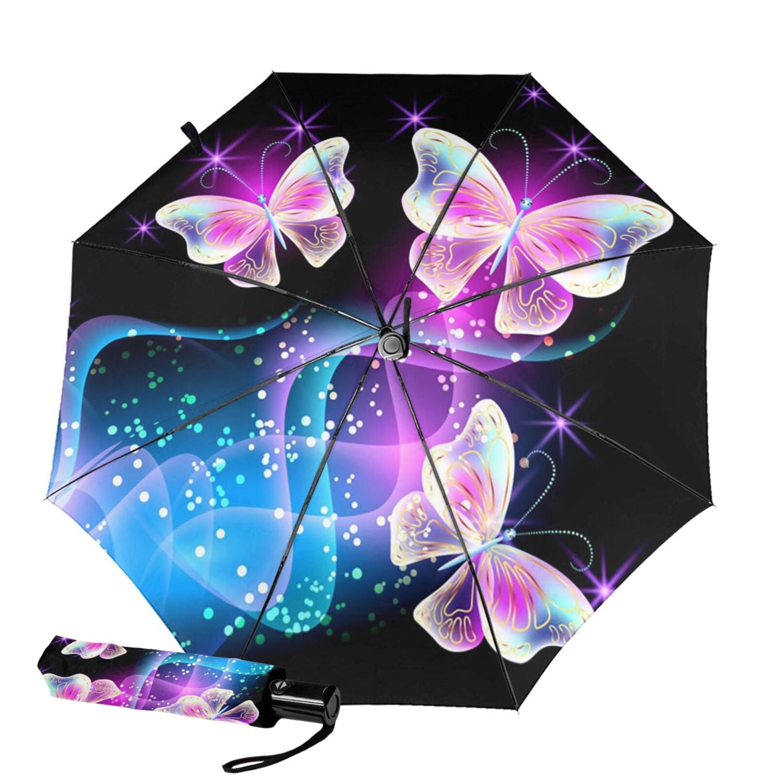 Kleiner faltbarer Regenschirm mit traumhaftem Schmetterlingsdruck im Inneren