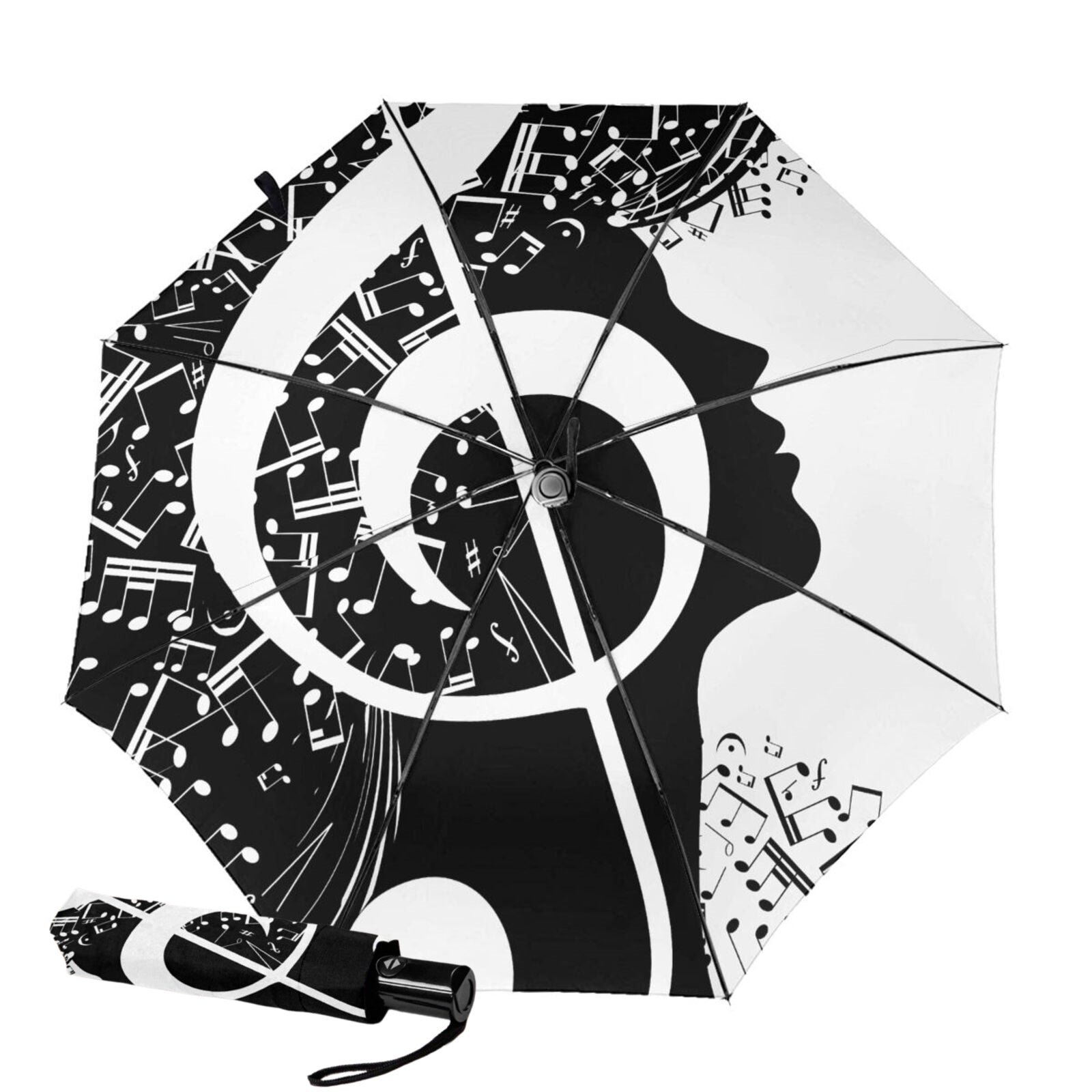 - Dieser bedruckte faltbare Regenschirm ist auf der Innenseite des Schirmdachs mit einem klassischen Music-Girl-Designmuster bedruckt.