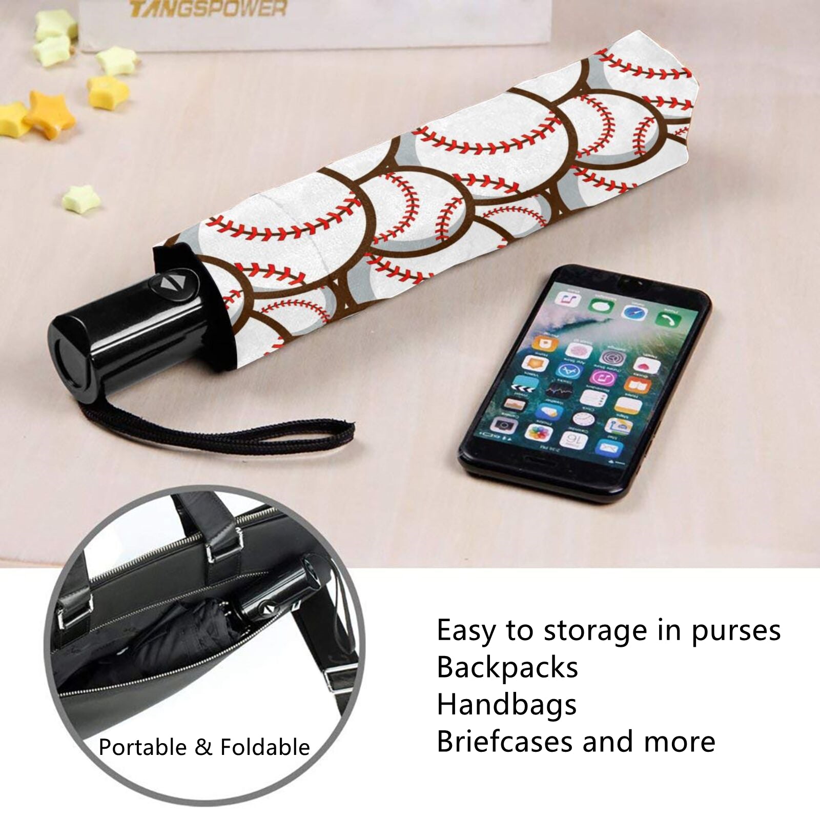 - Dieser bedruckte faltbare Regenschirm ist auf der Innenseite des Schirms mit einem klassischen Baseball-Designmuster bedruckt.