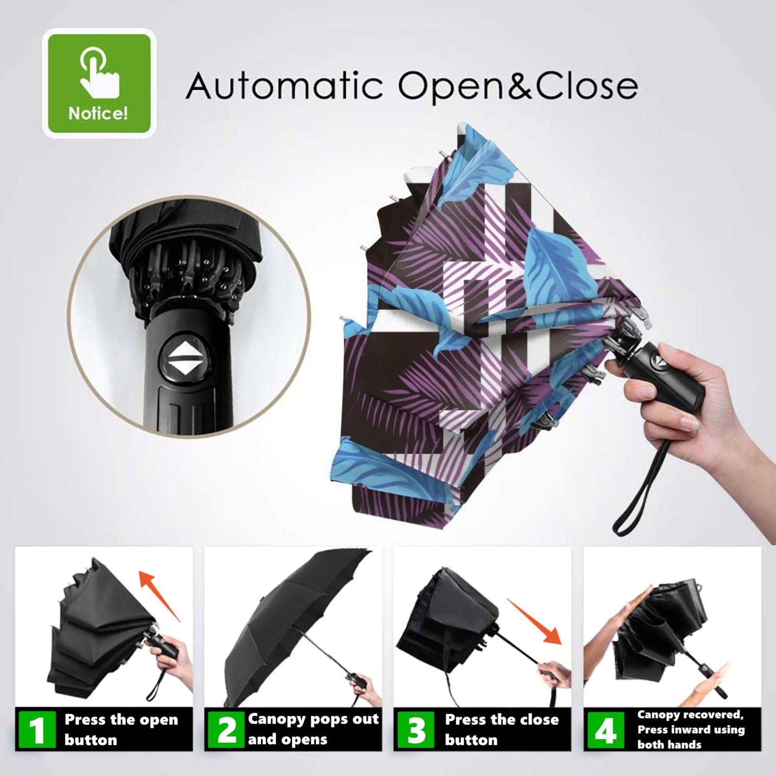 - Dies ist ein superhochwertiger und multifunktionaler Taschenschirm mit automatischem Öffnen und Schließen, der sich sowohl für den Einsatz an sonnigen als auch an regnerischen Tagen eignet.