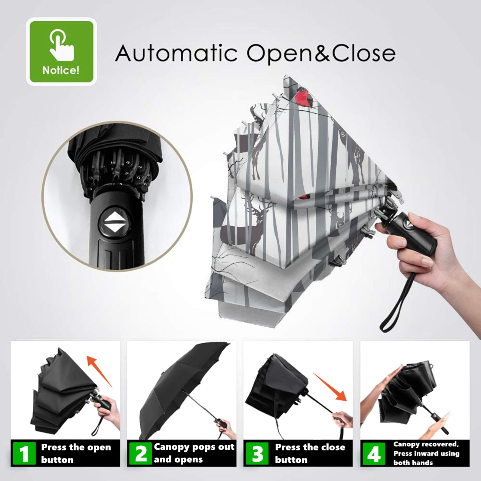 - Dies ist ein superhochwertiger und multifunktionaler Taschenschirm mit automatischem Öffnen und Schließen, der sich sowohl für den Einsatz an sonnigen als auch an regnerischen Tagen eignet.
