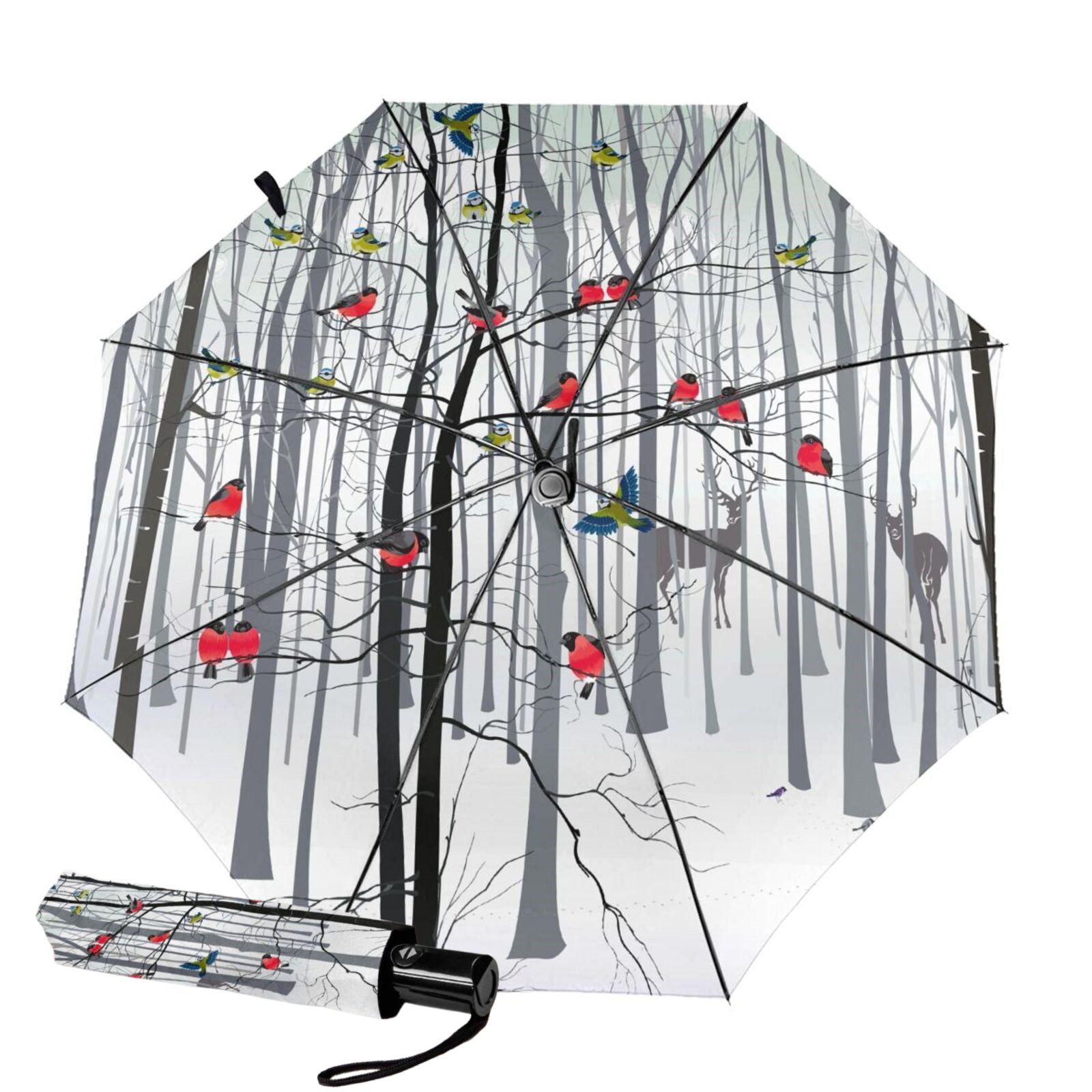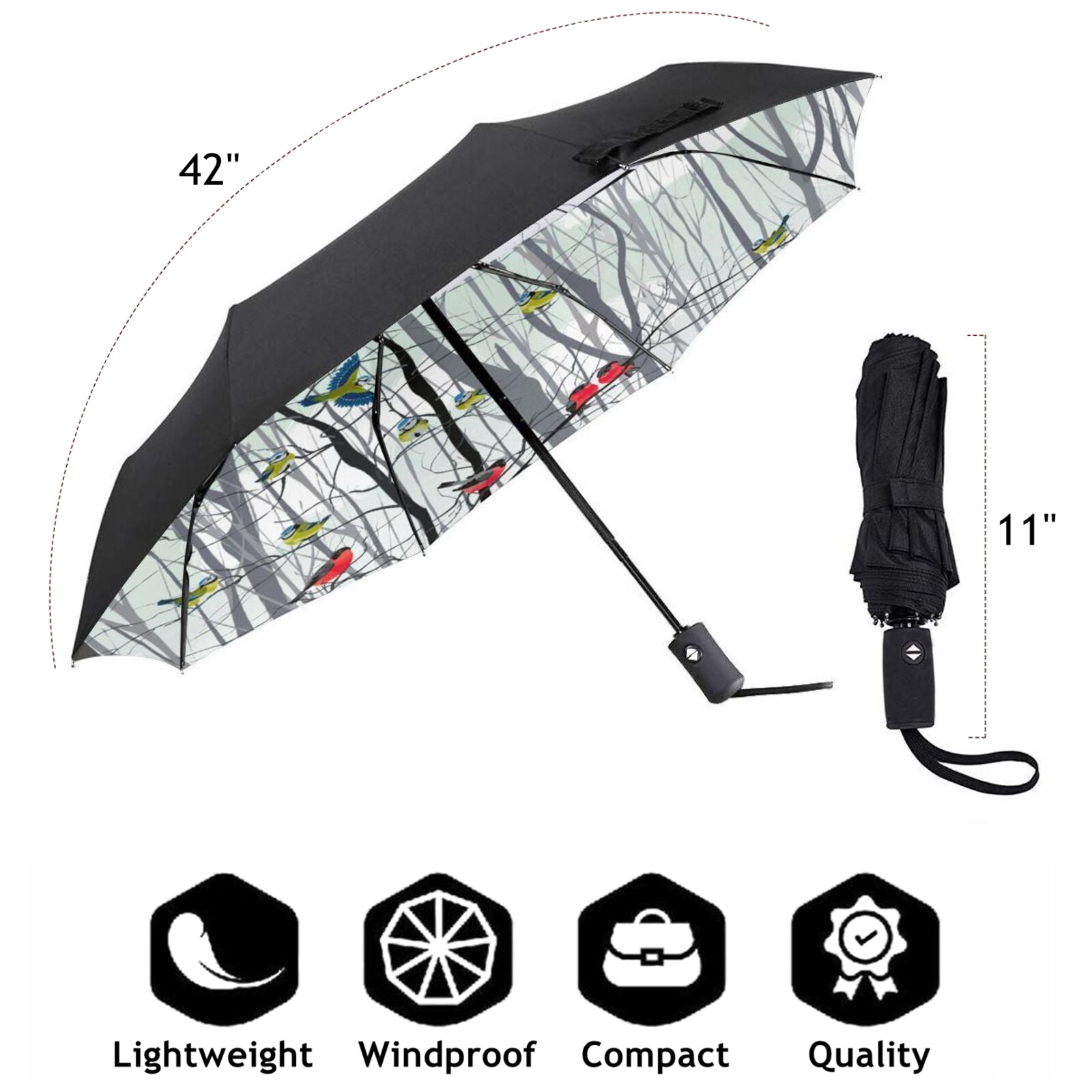 - Dieser bedruckte faltbare Regenschirm ist auf der Innenseite des Schirmdachs mit einem wunderschönen bunten Vogelmuster bedruckt.